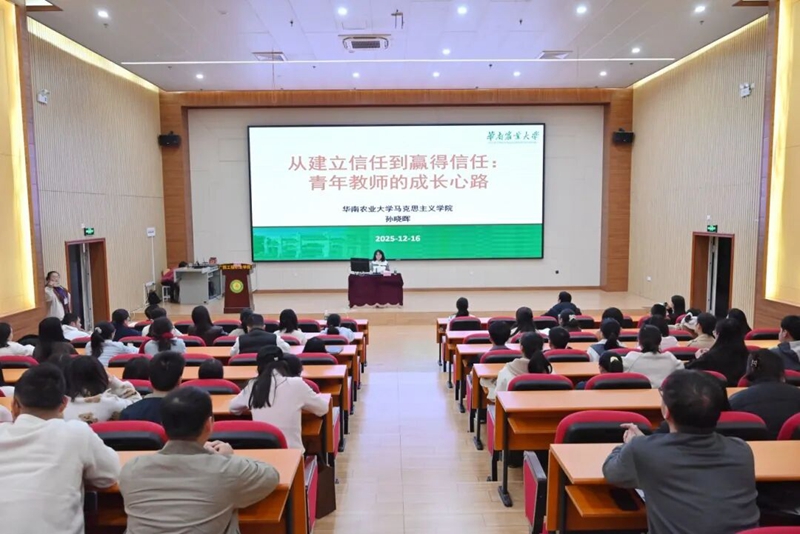 為深入學(xué)習(xí)貫徹習(xí)近平新時(shí)代中國(guó)特色社會(huì)主義思想,深化思想政治理論課改革創(chuàng)新,提升教師理論素養(yǎng)與思想境界,華南農(nóng)業(yè)大學(xué)馬克思主義學(xué)院孫曉暉博士于12月16日到我校作題為《從建立信任到贏得信任——青年教師的成長(zhǎng)心路》的專題講座。講座在圖文信息大樓三樓學(xué)術(shù)報(bào)告廳舉行,200多名教師到場(chǎng)聆聽,由馬克思主義學(xué)院副院長(zhǎng)李麗詩(shī)主持。