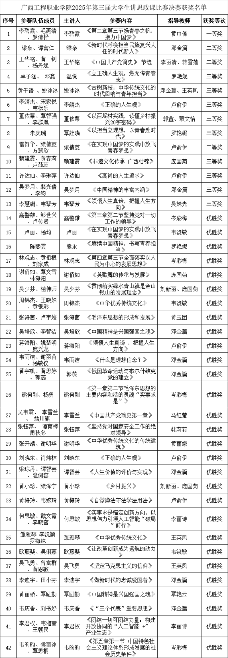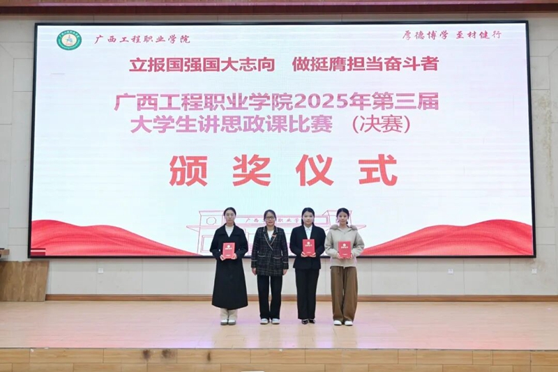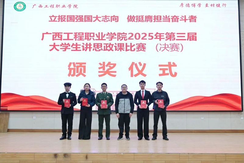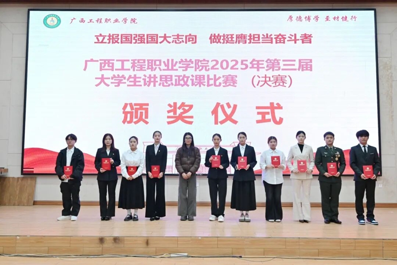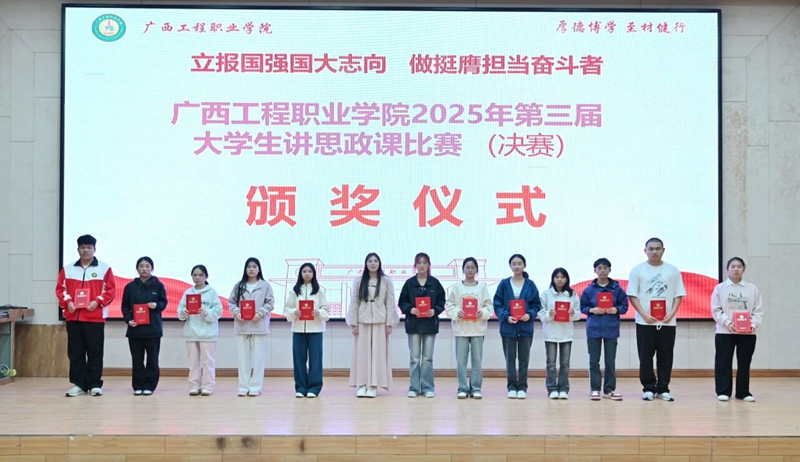 2025年12月19日,廣西工程職業(yè)學(xué)院2025年第三屆大學(xué)生講思政課比賽決賽在學(xué)校圖文信息大樓一樓學(xué)術(shù)報(bào)告廳圓滿落幕。各參賽隊(duì)伍、二級學(xué)院學(xué)生代表、全體思政課教師共300余人參加活動。