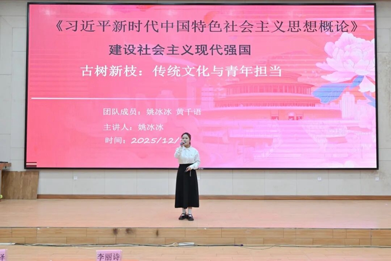 決賽現(xiàn)場,來自全校13支優(yōu)秀團(tuán)隊(duì)依次登臺展示,各展風(fēng)采。《以百坭村實(shí)踐,讀懂鄉(xiāng)村振興20字密碼》到《高尚的人生追求》,再到《在實(shí)現(xiàn)中國夢的實(shí)踐中放飛青春夢想》等來自《習(xí)近平新時代中國特色社會主義思想概論》《思想道德與法治》《毛澤東思想和中國特色社會主義理論體系概論》的核心課程內(nèi)容。他們用詳實(shí)的數(shù)據(jù)和鮮活的故事詮釋了“綠水青山就是金山銀山”的發(fā)展理念;通過情景演繹再現(xiàn)革命先輩的奮斗歷程,用紅色故事筑牢信仰之基;通過芯片研發(fā)故事、新能源技術(shù)應(yīng)用等案例,生動解讀了“科技自立自強(qiáng)是國家強(qiáng)盛之基”的深刻內(nèi)涵,將專業(yè)知識與思政理論有機(jī)融合,展現(xiàn)了工程學(xué)子的家國情懷。以《古樹新枝:中華傳統(tǒng)文化的時代回響與青年擔(dān)當(dāng)》為主題的宣講內(nèi)容,結(jié)合國潮興起、非遺傳承等鮮活案例,闡述中華優(yōu)秀傳統(tǒng)文化正在以嶄新姿態(tài)“破圈”生長。選手們精神飽滿、表達(dá)流暢,教學(xué)設(shè)計(jì)邏輯清晰,案例選擇貼近生活,既展現(xiàn)了扎實(shí)的理論功底,又彰顯了新時代大學(xué)生的精神風(fēng)貌,現(xiàn)場掌聲此起彼伏。