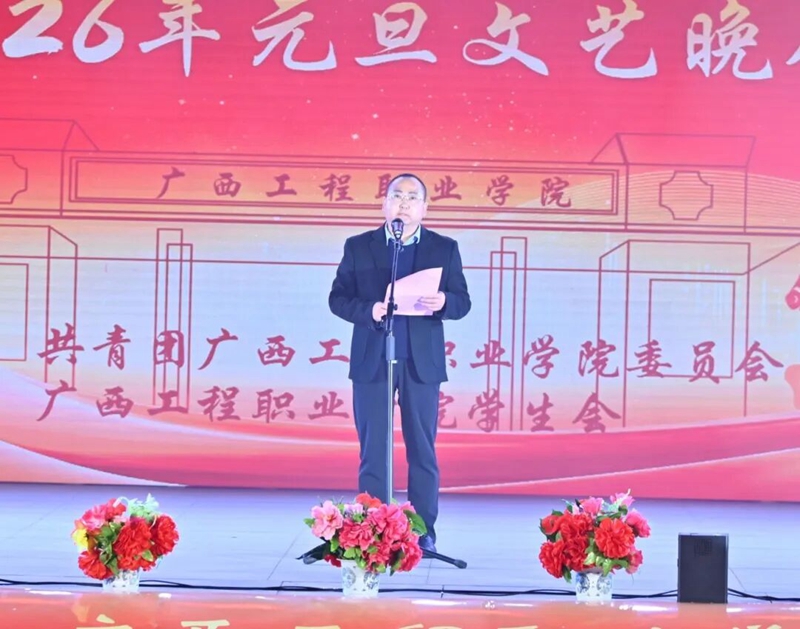 黨委書記、政府督導(dǎo)專員蒙本曼宣布廣西工程職業(yè)學(xué)院2026年元旦文藝晚會正式開始。