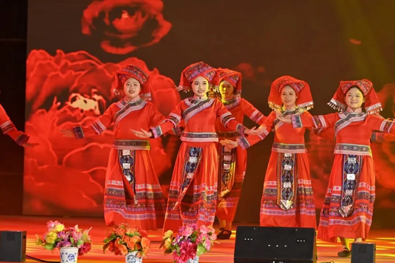 圖為民族舞《黨旗領(lǐng)航·元啟華章》(表演者:教育學(xué)院 田玉丹 韋麗瀟等)