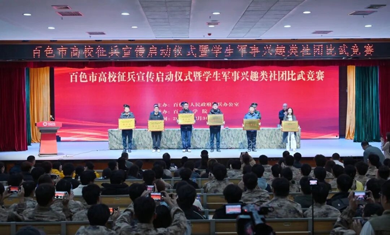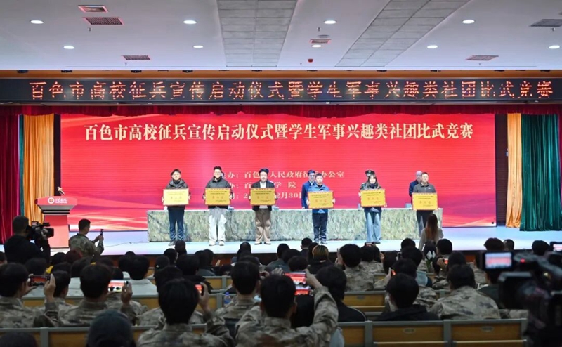 百色市高校征兵宣傳啟動儀式暨學(xué)生軍事興趣類社團(tuán)比武競賽于2025年12月29日-30日在百色學(xué)院澄碧湖校區(qū)舉行。本次活動旨在激發(fā)廣大高校學(xué)子投身國防、報(bào)效祖國的熱情,同時(shí)展示各校軍事類社團(tuán)的建設(shè)成果與青春風(fēng)采。廣西工程職業(yè)學(xué)院選派精銳學(xué)生軍事興趣社團(tuán)代表隊(duì)參賽,憑借過硬的軍事素養(yǎng)和昂揚(yáng)的拼搏精神,在激烈的角逐中脫穎而出,以優(yōu)異表現(xiàn)榮獲團(tuán)體總成績第一名的佳績,成為賽場上一道亮麗的風(fēng)景線。