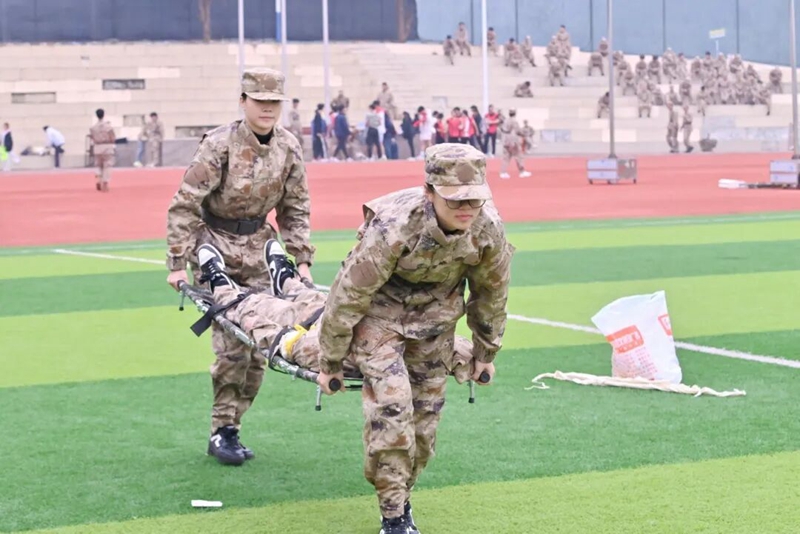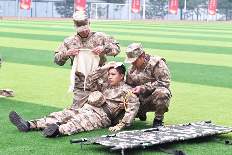 在模擬實(shí)戰(zhàn)環(huán)境的戰(zhàn)場救護(hù)項(xiàng)目中,我校隊(duì)員操作熟練、配合默契,迅速完成傷員搜索、止血包扎、固定搬運(yùn)等一系列動作,展現(xiàn)出高效的戰(zhàn)場救護(hù)能力,榮獲第二名。