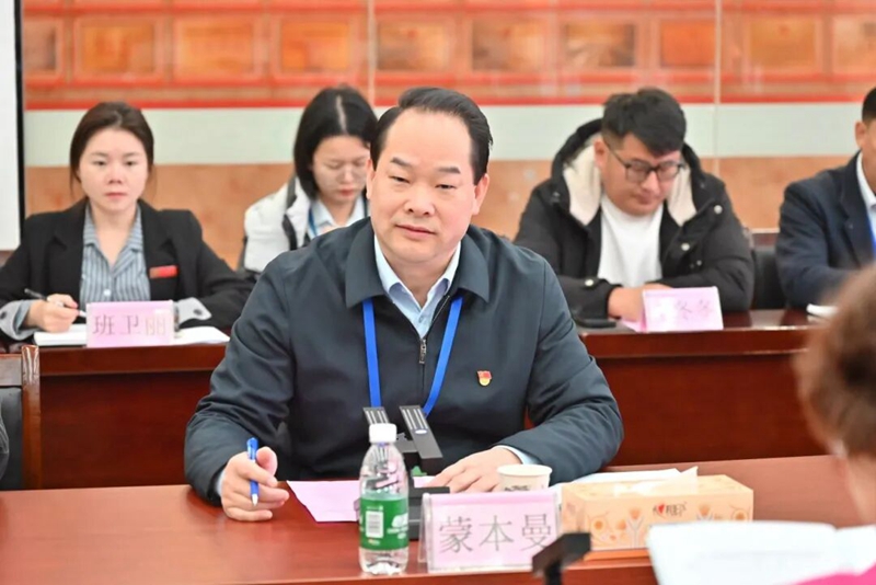 圖為學(xué)校黨委書記、政府督導(dǎo)專員蒙本曼致辭