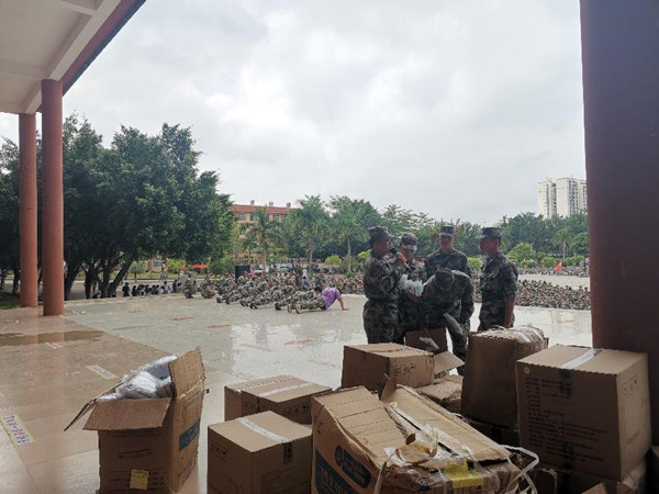 教官在組織學(xué)生準(zhǔn)備發(fā)放口罩