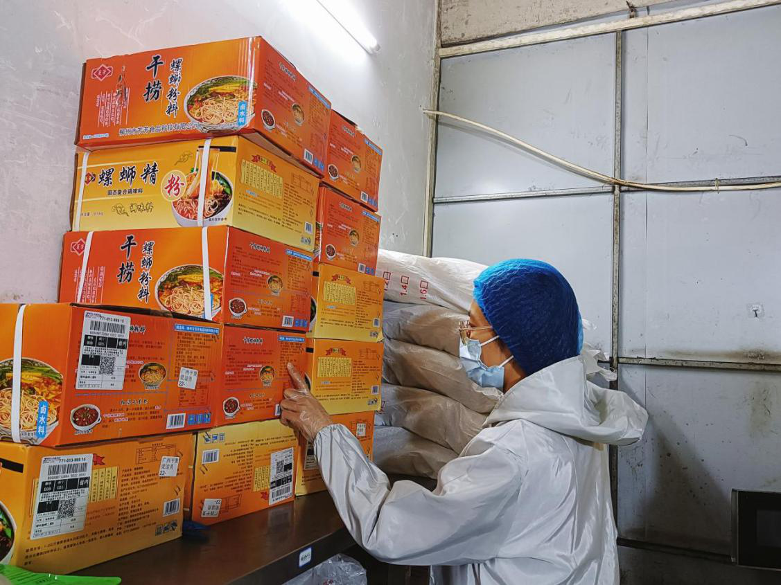 圖為檢查倉(cāng)庫(kù)食品生產(chǎn)日期