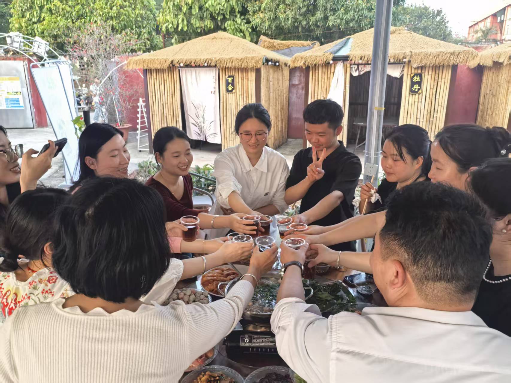 圖為教師舉杯共慶“三月三”