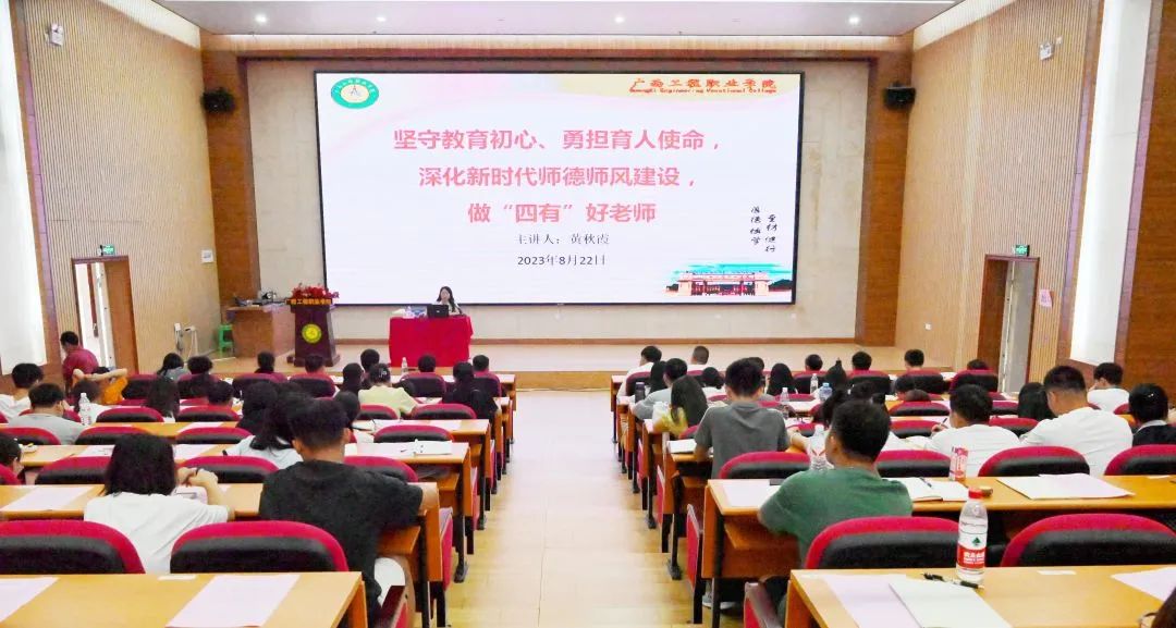 百年大計(jì),教育為本;教育大計(jì),教師為本。為了進(jìn)一步提升新任教師的教育教學(xué)水平和促進(jìn)教師職業(yè)發(fā)展,讓新任教師盡快適應(yīng)教育教學(xué)工作,廣西工程職業(yè)學(xué)院于2023年8月22日-8月24日在圖文信息大樓一樓學(xué)術(shù)報(bào)告廳舉行2023年第二期新任教師崗前培訓(xùn)。本次培訓(xùn)由人力資源處、教務(wù)處組織開(kāi)展,采取集中學(xué)習(xí)方式,由相關(guān)校領(lǐng)導(dǎo)、中層干部、骨干教師進(jìn)行專(zhuān)題培訓(xùn)。