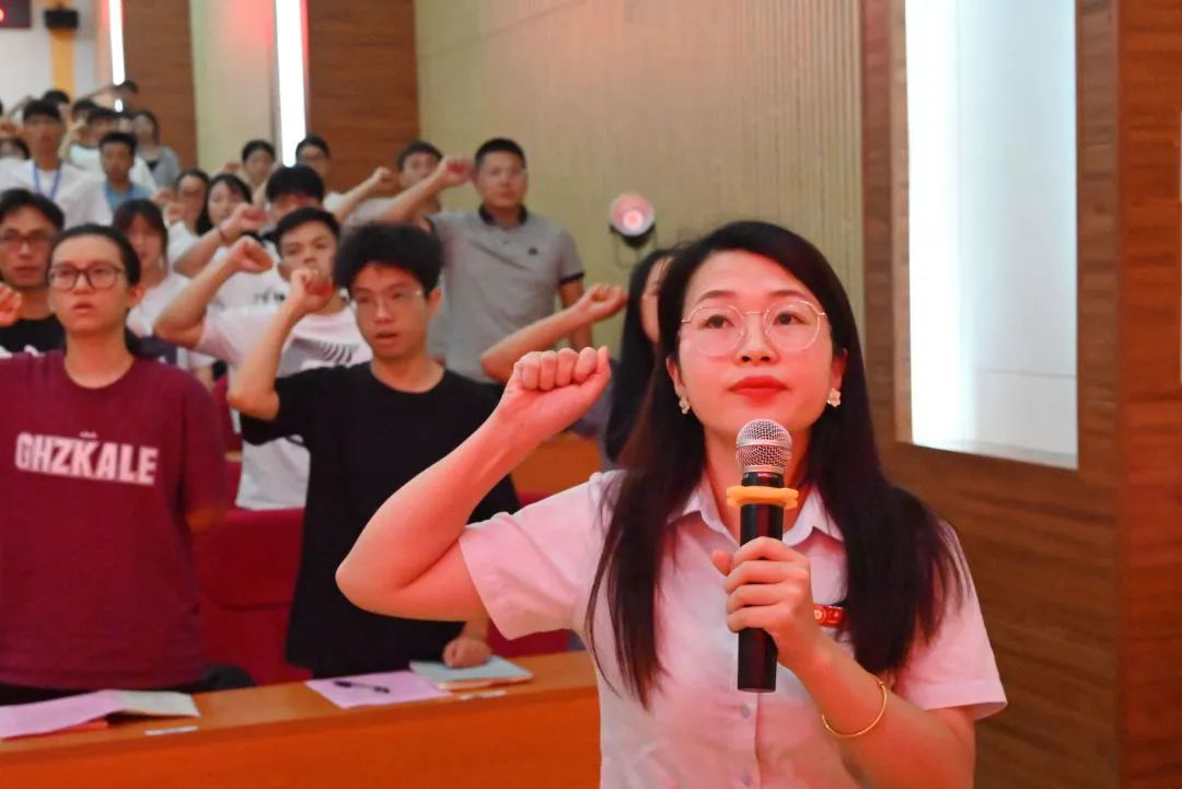 開(kāi)班典禮上,為增強(qiáng)新任教師的榮譽(yù)感和使命感,黃秋霞副書(shū)記帶領(lǐng)新入職教師進(jìn)行了入職宣誓。全體新任教師整齊肅立,右手舉拳,面向國(guó)旗,進(jìn)行了莊嚴(yán)的入職宣誓。