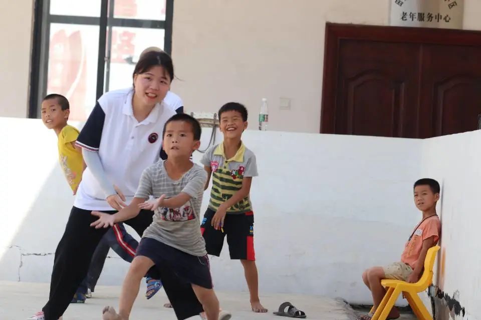 第一次見面,雙方都很新奇激動。我們與小朋友親切交談,詢問他們學習、生活及平時的文體活動等情況,關心愛護他們,并以引導參與游戲的方式,拉近與留守兒童之間的情感,給他們帶來歡樂。