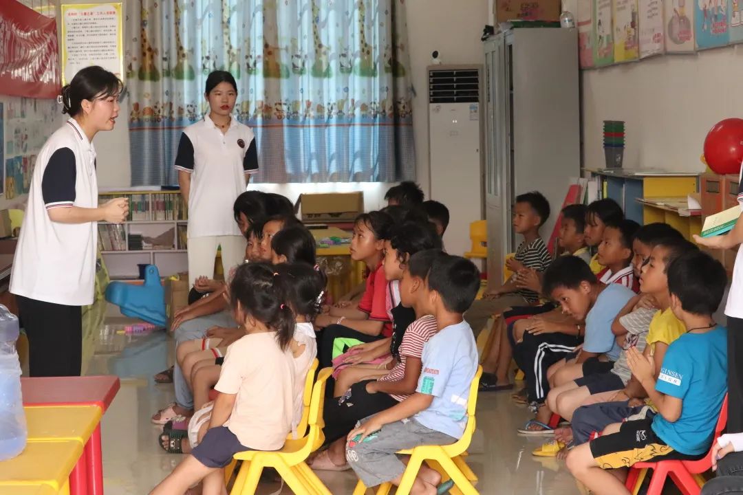 2022年7月11日上午九點,在校團委書記梁鳳琴等指導老師的帶領下,廣工院暑期“三下鄉(xiāng)”社會實踐活動團隊來到了思林鎮(zhèn)龍邦村童心港灣。