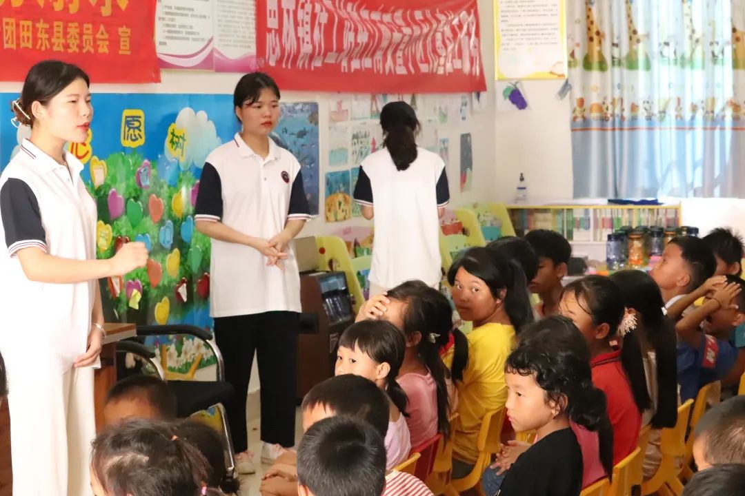 在安全教育課堂上,廣工院學子瞬間變成專業(yè)的小老師,為留守兒童普及防電、防水、防火、防震和安全交通等安全知識,并且融入心理疏導、急救科普等知識。教學過程中,我們的隊員觀察到大部分兒童喜歡光腳走路,就提醒孩子們走路時注意腳下有沒有踩到釘子和碎玻璃。切實做到關愛留守兒童,助力其健康成長。