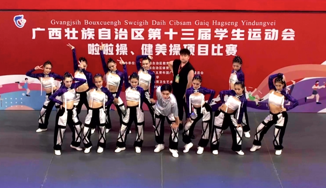 在學(xué)校領(lǐng)導(dǎo)的關(guān)心和支持下,在領(lǐng)隊(duì)盧燕梅老師和教練員唐任澤、陶輝老師的帶領(lǐng)和指導(dǎo)下,經(jīng)過(guò)激烈比賽和嚴(yán)格評(píng)審,學(xué)校集體街舞、雙人花球、雙人街舞啦啦操隊(duì)一路挺進(jìn)決賽,并憑借頑強(qiáng)的拼搏精神和優(yōu)秀的技巧、整齊劃一的動(dòng)作獲得了三個(gè)獎(jiǎng)項(xiàng)。其中,雙人花球隊(duì)榮獲自治區(qū)第七名的好成績(jī),雙人街舞隊(duì)榮獲第八名,集體街舞啦啦操隊(duì)榮獲第八名。