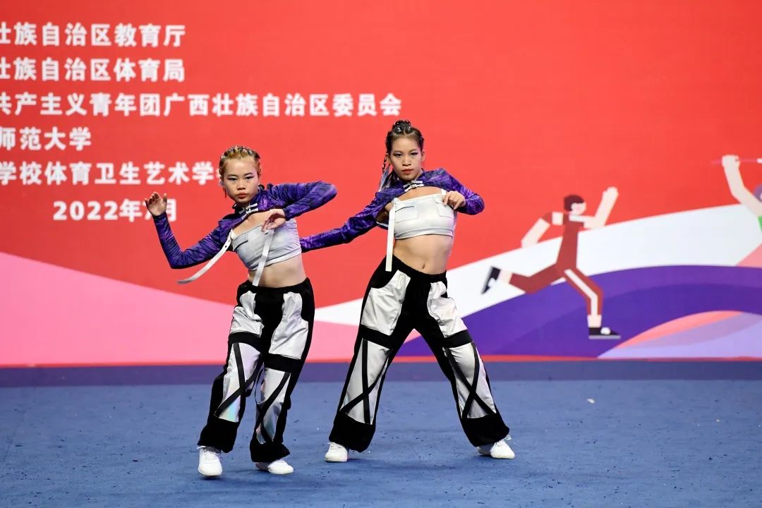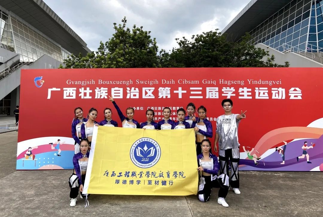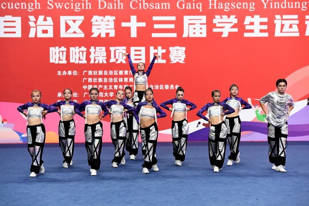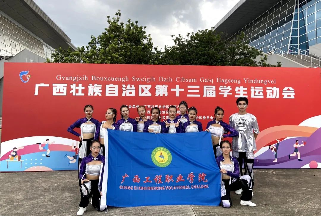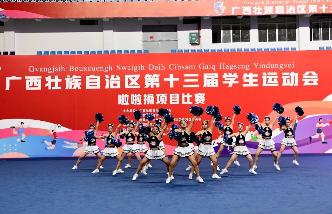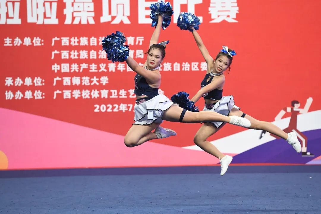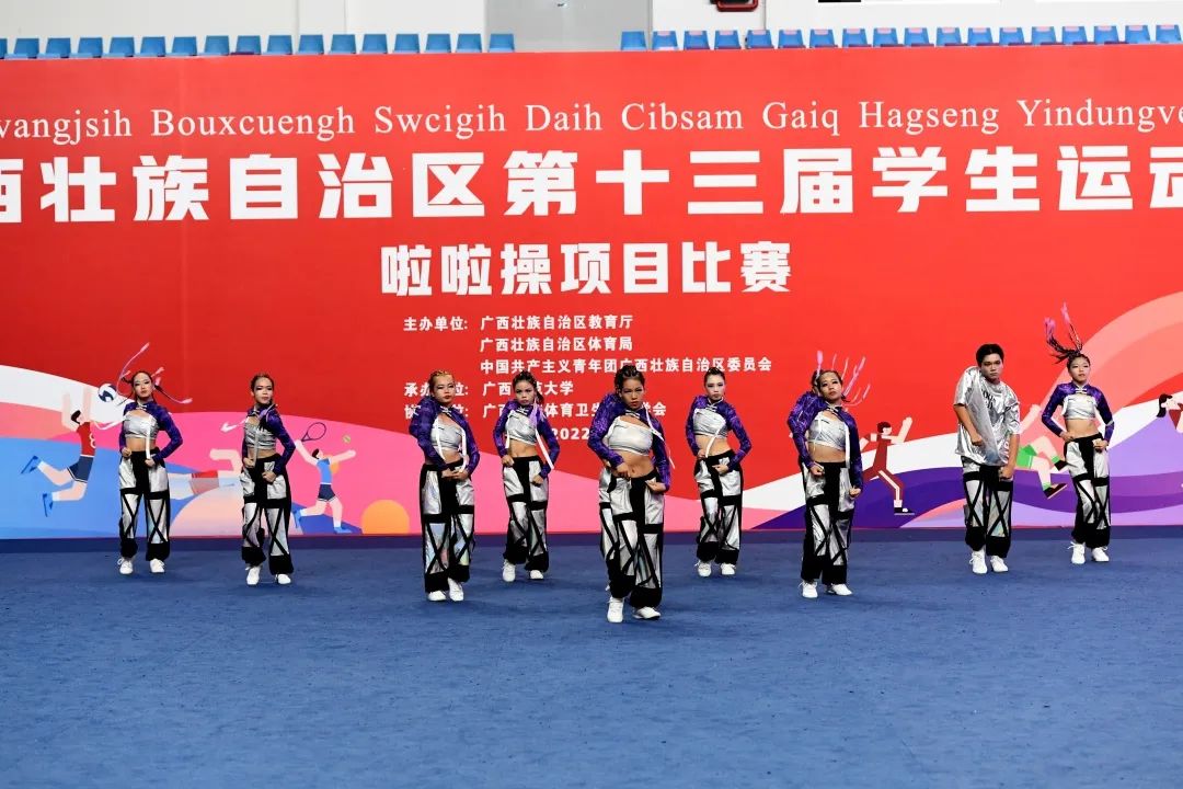 2022年7月15—19日,廣西壯族自治區(qū)第十三屆學(xué)生運(yùn)動(dòng)會(huì)啦啦操項(xiàng)目比賽在廣西師范大學(xué)舉行,我校學(xué)生代表隊(duì)取得雙人花球第七名、雙人街舞第八名和集體街舞第八名的好成績(jī)。