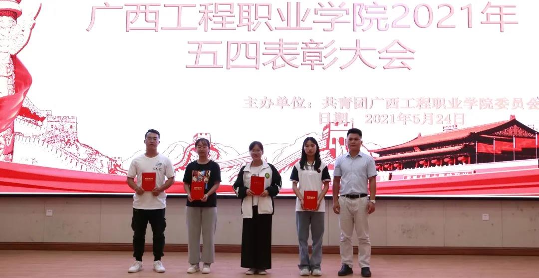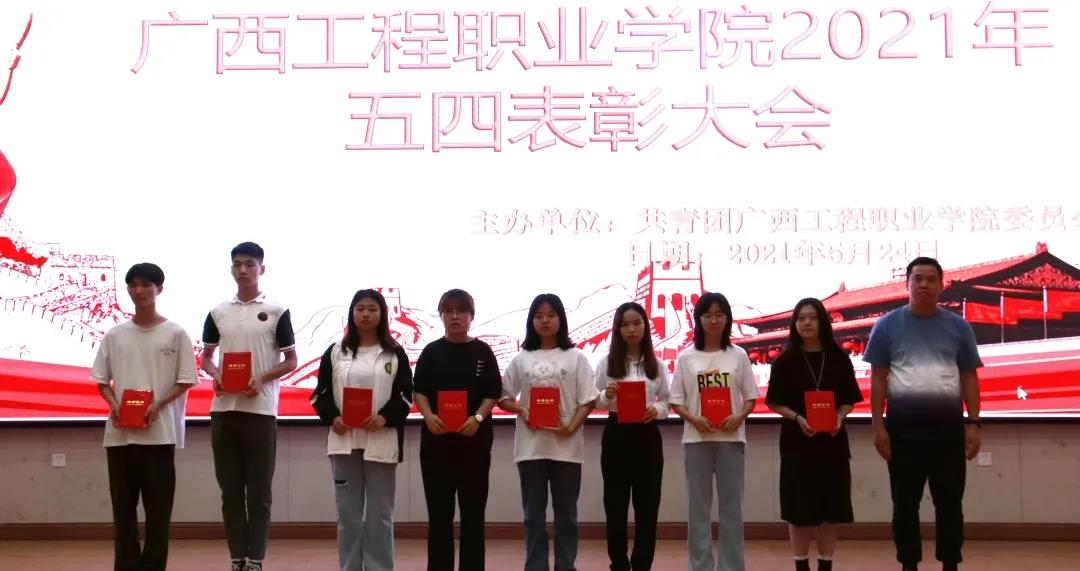 為發(fā)揚(yáng)“五四”傳統(tǒng),弘揚(yáng)“五四”精神,并以此樹立典型,表彰先進(jìn),進(jìn)一步推動(dòng)各項(xiàng)工作和建設(shè)加快發(fā)展,2021年5月24日下午18:30在廣西工程職業(yè)學(xué)院圖文信息大樓一樓報(bào)告廳舉行2021年五四表彰大會(huì)。會(huì)議由校團(tuán)委黃詩晴老師主持,參加會(huì)議的有校長助理黃秋霞老師、學(xué)工處副處長吳發(fā)德老師、土木工程學(xué)院副院長李麗詩、國防科技學(xué)院副院長梁欣欣、鐵道與航空學(xué)院副院長林騫、汽車與機(jī)電學(xué)院副院長彭家官、經(jīng)濟(jì)管理學(xué)院副院長覃清香、五年大專部部長凌小平、校團(tuán)委陳威老師、校團(tuán)委梁秋霞老師、各二級(jí)學(xué)院分團(tuán)委書記以及五年大專部、附屬中學(xué)團(tuán)委書記。
