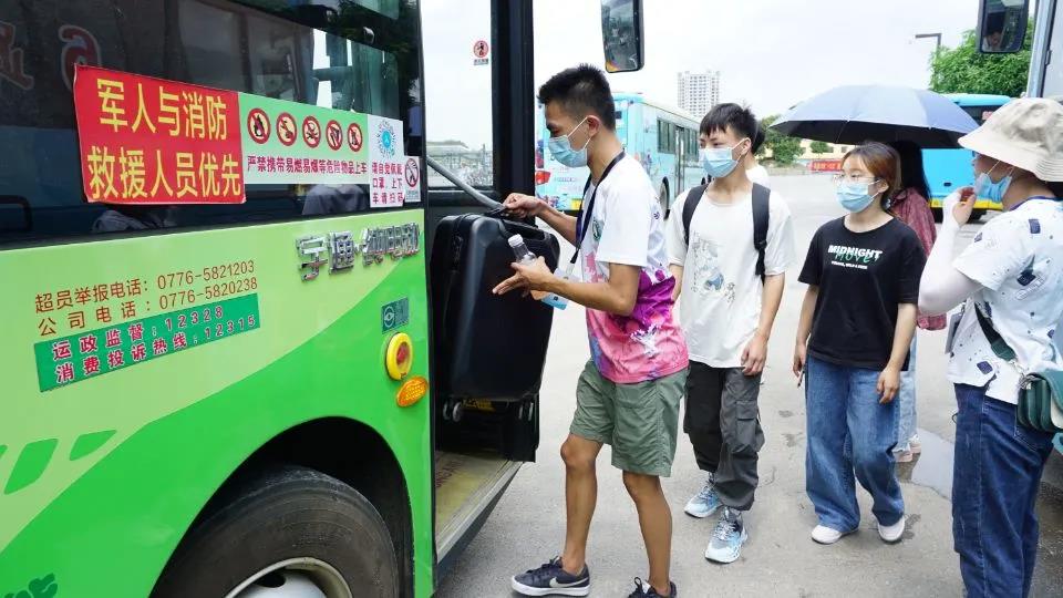在校外迎新點(diǎn)幫助新生搬運(yùn)行李上車