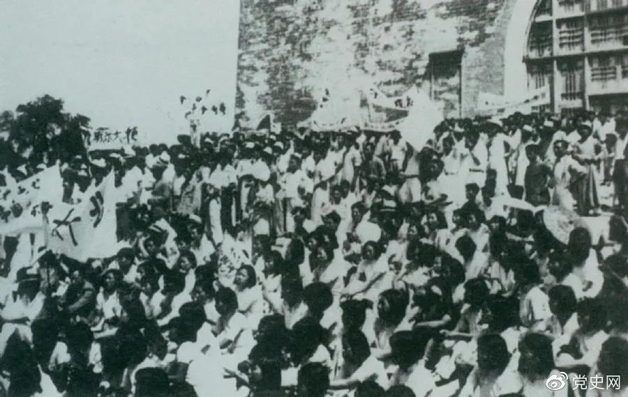 1936年6月13日,北平學(xué)生與市民在鼓樓前舉行聲勢浩大的抗日集會。