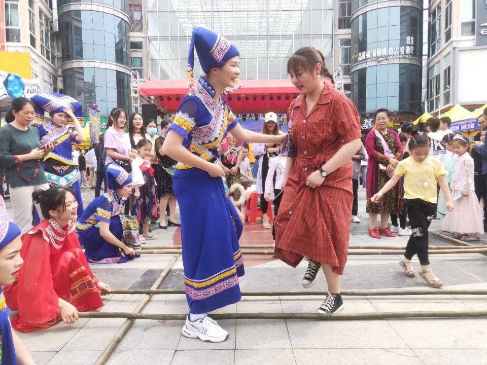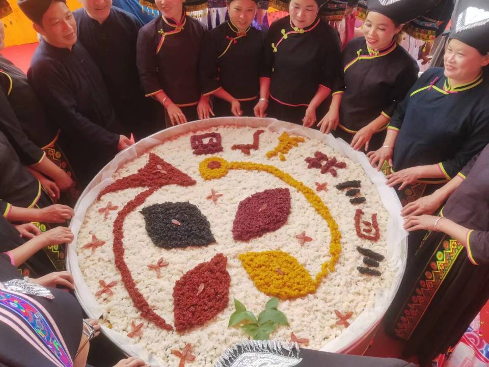 活動(dòng)現(xiàn)場(chǎng),校藝術(shù)團(tuán)的演員們參加了五色糯米飯的蒸嘗、打礱、竹竿舞表演等活動(dòng),正值假期的第一天,活動(dòng)現(xiàn)場(chǎng)更是人聲鼎沸。