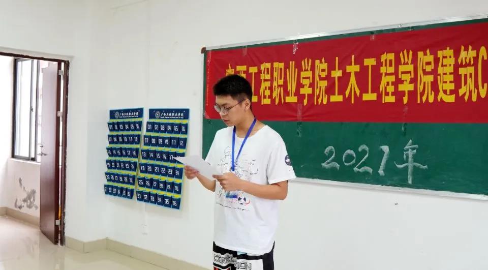 為迎建黨100周年,弘揚(yáng)工匠精神,培養(yǎng)德才兼?zhèn)?、掌握精湛專業(yè)操作技能的高素質(zhì)新時(shí)代青年,2021年5月30日,土木工程學(xué)院在學(xué)院2號(hào)樓舉行“獻(xiàn)禮建黨一百周年,建筑CAD制圖與識(shí)圖技能大賽”。主持人黃賀楠介紹出席本次大賽的領(lǐng)導(dǎo)、嘉賓有:學(xué)校黨委委員、土木工程學(xué)院黨總支書(shū)記、副院長(zhǎng)李麗詩(shī);土木工程學(xué)院辦公室主任黃連芳,分團(tuán)委書(shū)記陳春任;專業(yè)教師龍群良、潘新康、于海等老師以及各社團(tuán)代表。