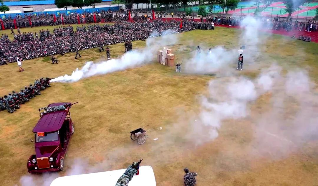 軍體拳、匕首操、棍術(shù)、旗語、作戰(zhàn)戰(zhàn)術(shù)等軍事訓(xùn)練項目表演在觀眾的期待中火熱上演。同學(xué)們風(fēng)華正茂,氣勢如虹,他們動作整齊劃一、迅捷勇猛、剛勁有力,展示了他們經(jīng)過軍訓(xùn)洗禮后的喜人收獲與成果,也充分展示了工程學(xué)子的錚錚鐵骨、雄心壯志以及使命與擔(dān)當(dāng)!