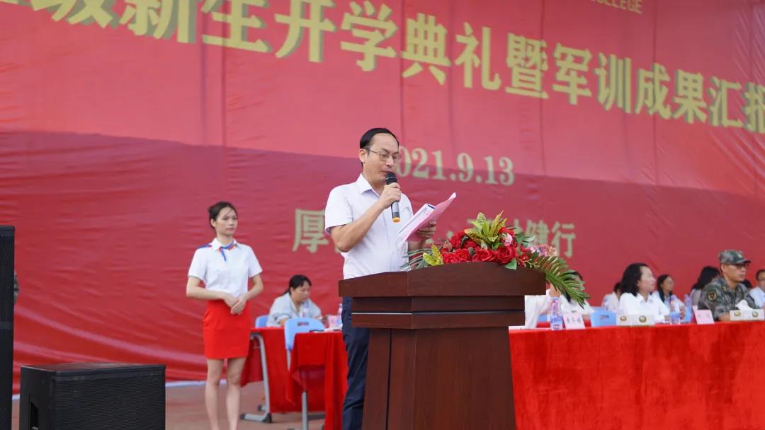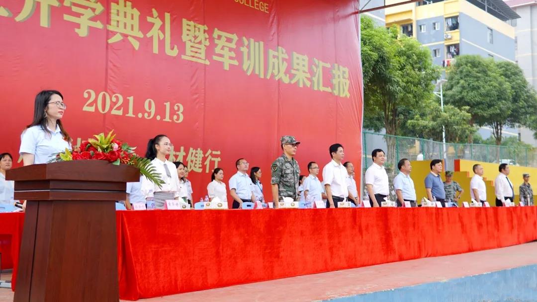 李益紀(jì)委書記宣布廣西工程職業(yè)學(xué)院2021級新生開學(xué)典禮暨軍訓(xùn)成果匯報會正式開始!