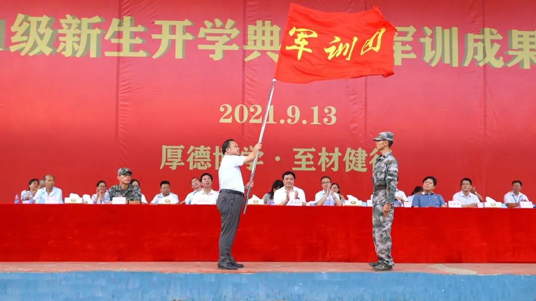 最后,廣西綠盾國防教育基地總教官唐森林向?qū)W校紀(jì)委書記李益轉(zhuǎn)交軍訓(xùn)團團旗,廣西工程職業(yè)學(xué)院2021級新生開學(xué)典禮暨軍訓(xùn)成果匯報會圓滿結(jié)束。