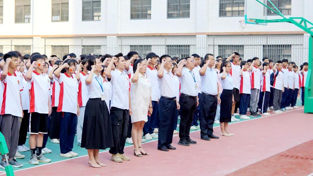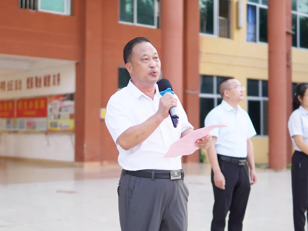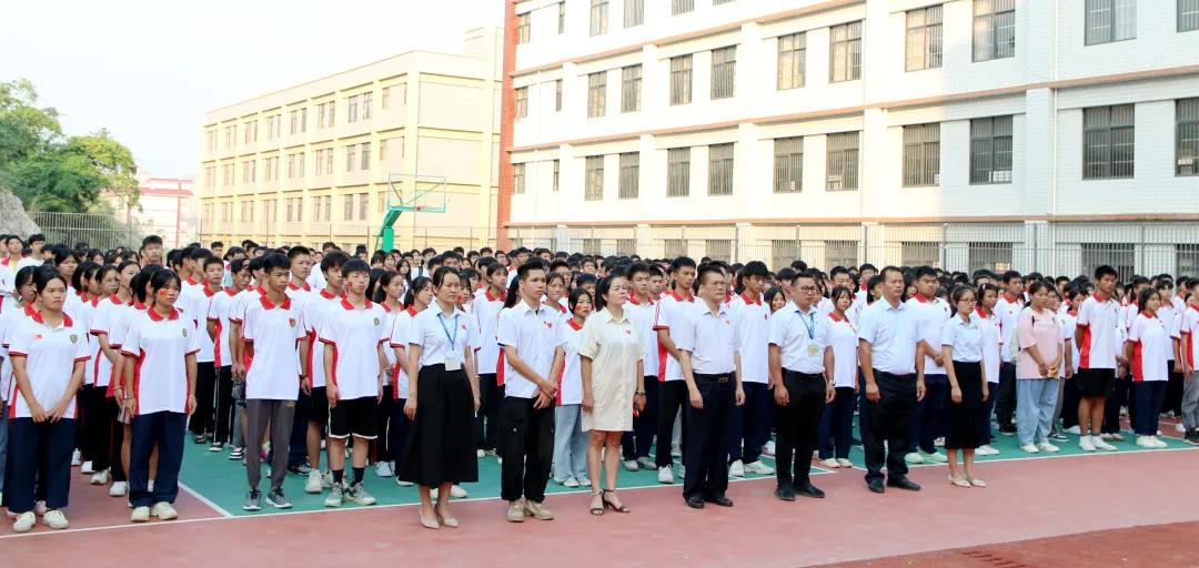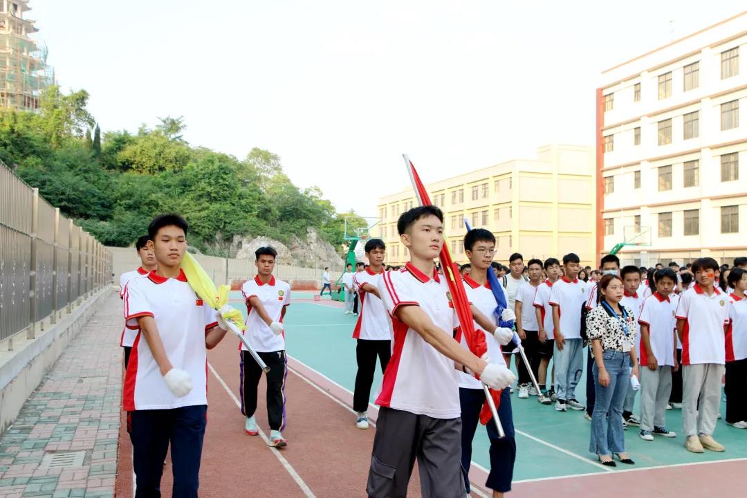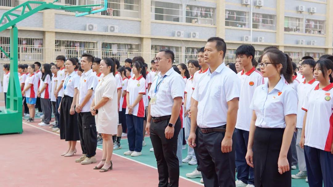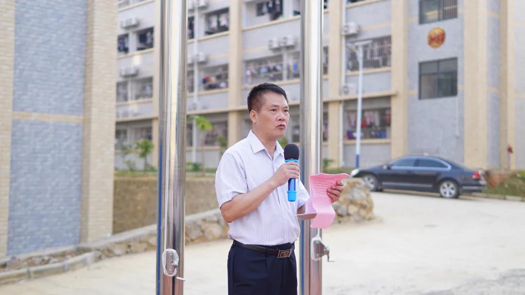 廣西工程職業(yè)學(xué)院平果附屬實驗中學(xué)副校長周大義講話,他指出同學(xué)們正處于學(xué)習(xí)的黃金時期,要把學(xué)習(xí)作為首要任務(wù),珍惜時光,志存高遠,要將愛國情、強國志轉(zhuǎn)化為實際行動,勤奮好學(xué),吃苦耐勞,努力成長為德智體美勞全面發(fā)展的一代新人,用良好的習(xí)慣、優(yōu)異的成績、強健的體魄感恩祖國,報效祖國。