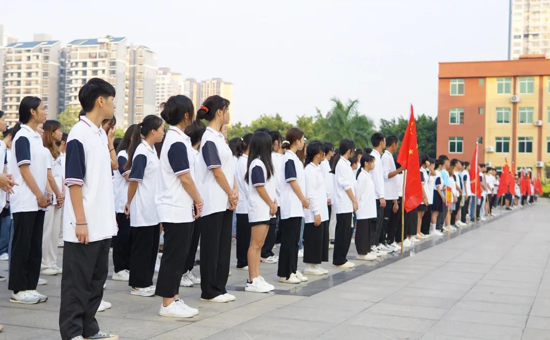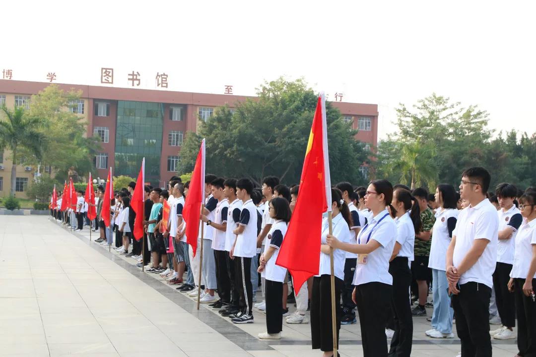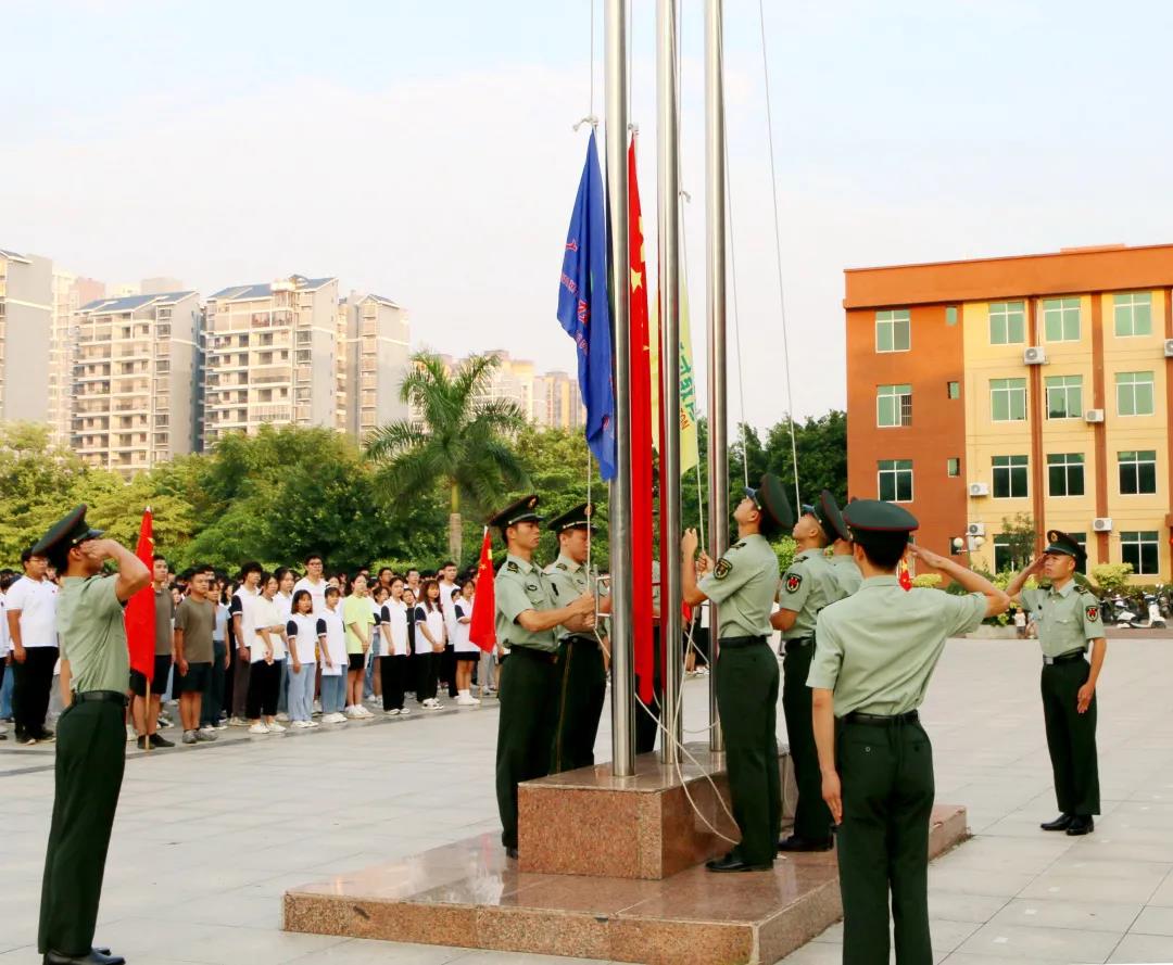 學(xué)校執(zhí)行校長、紀委書記李益,黨委委員、副校長彭高彬,副校長林萌、黃德偉,校長助理黃秋霞以及中層干部出席升旗儀式