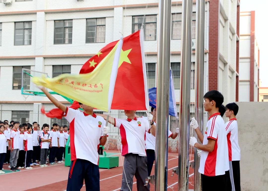全體肅立,奏唱國歌,五星紅旗冉冉升起,迎風(fēng)飄揚。在場的每一位師生向國旗靜靜地行注目禮,表達對祖國母親真摯的熱愛、崇高的敬意和深深的祝福;表達全體師生團結(jié)一致、拼搏奮進的決心和愿望。