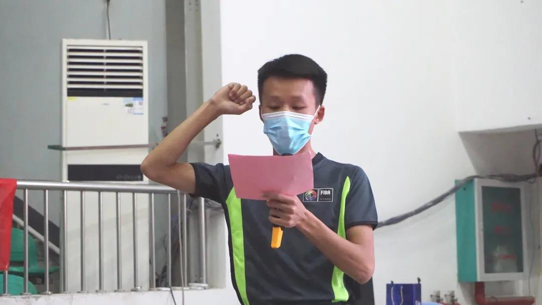 裁判員代表進行宣誓,表示全體裁判員將堅守崗位,恪盡職守,公平裁決,嚴格履行裁判員職責,預祝本次“新生杯”籃球取得圓滿成功!