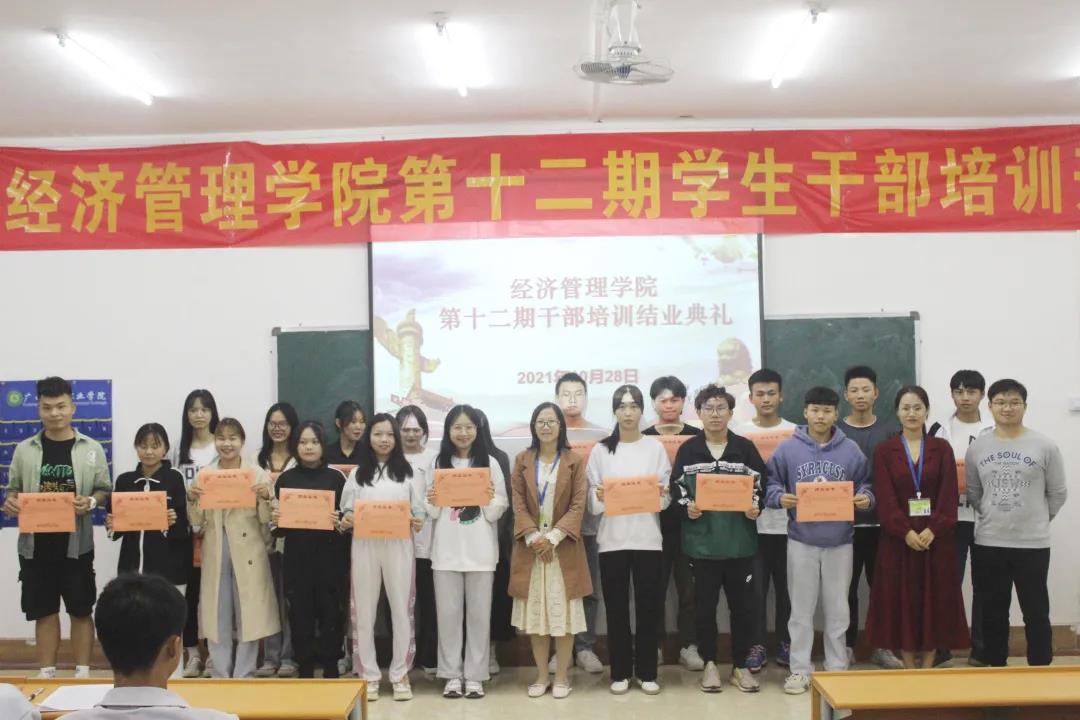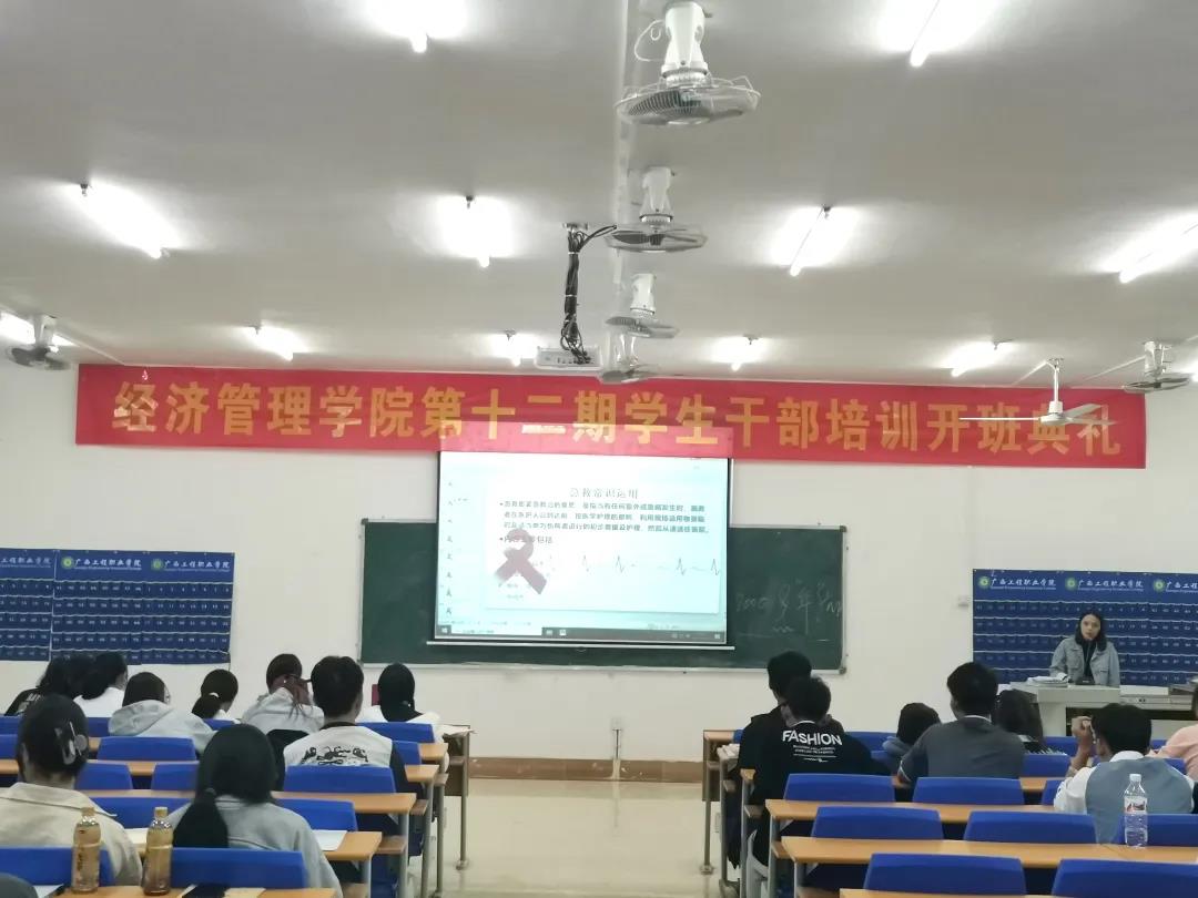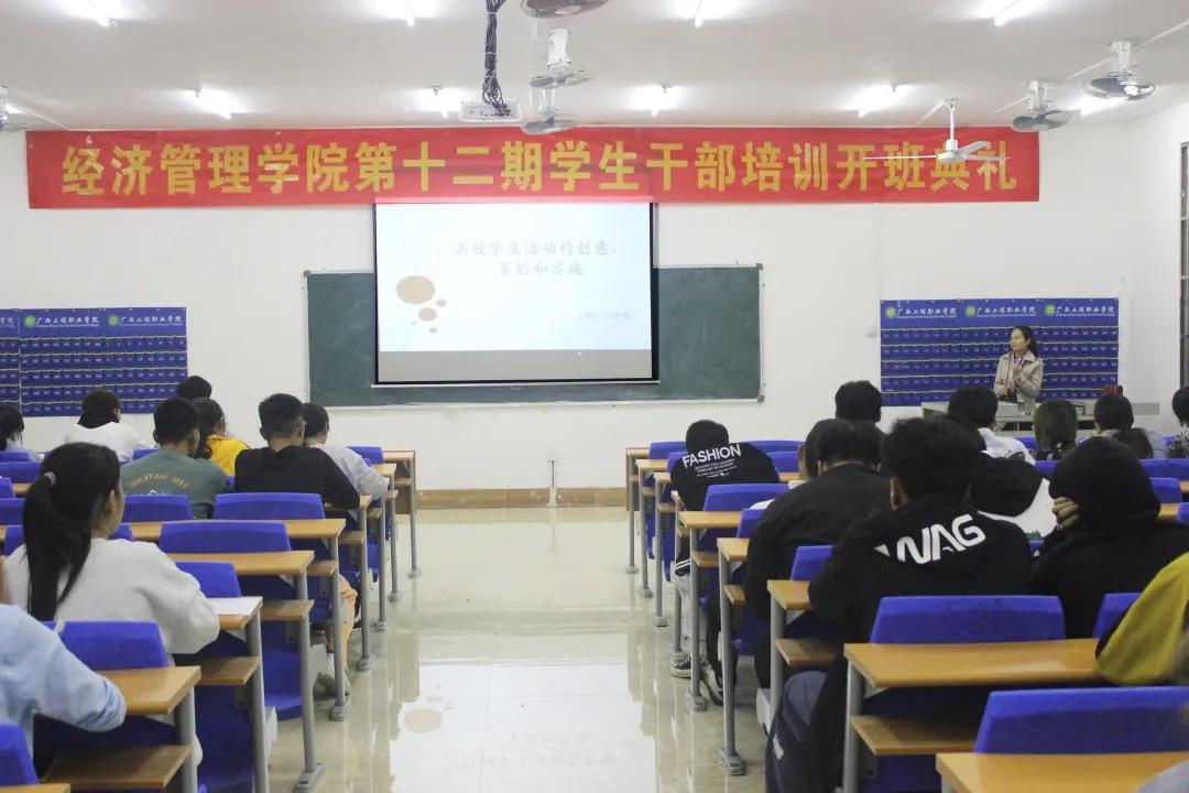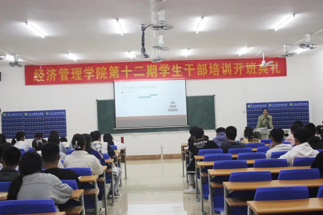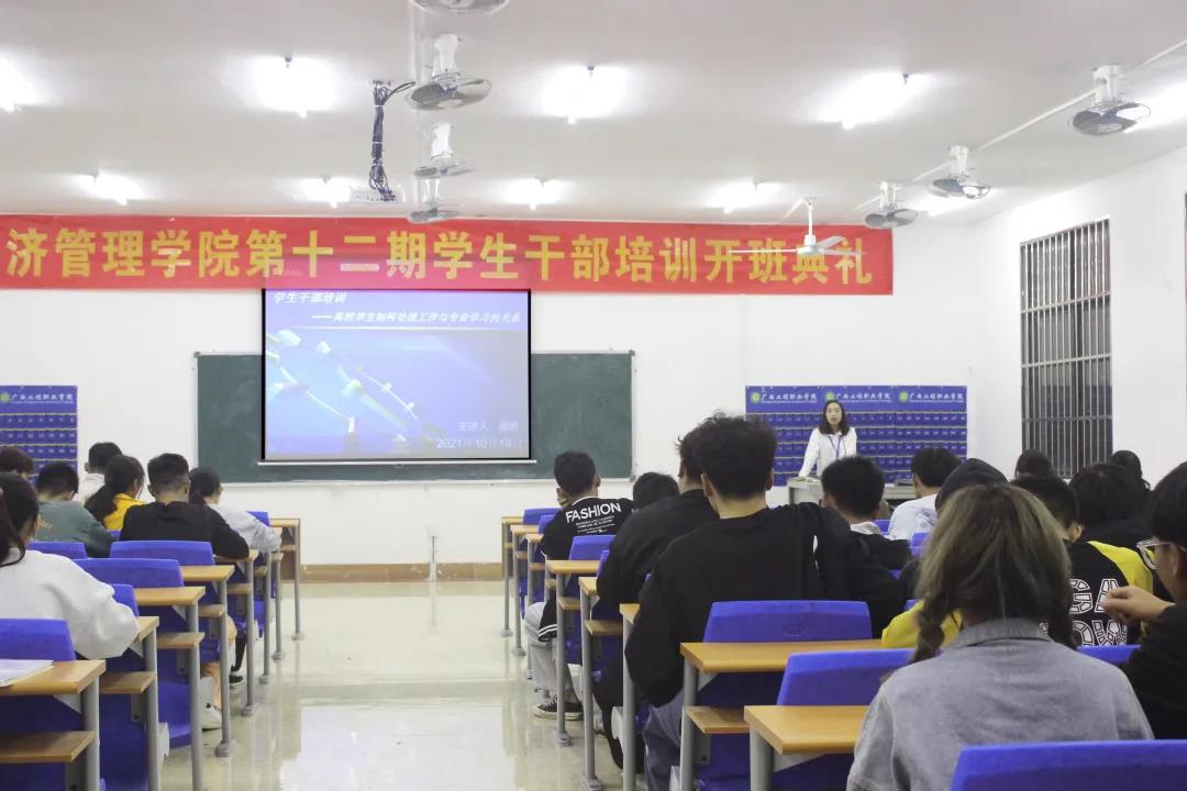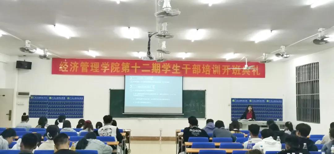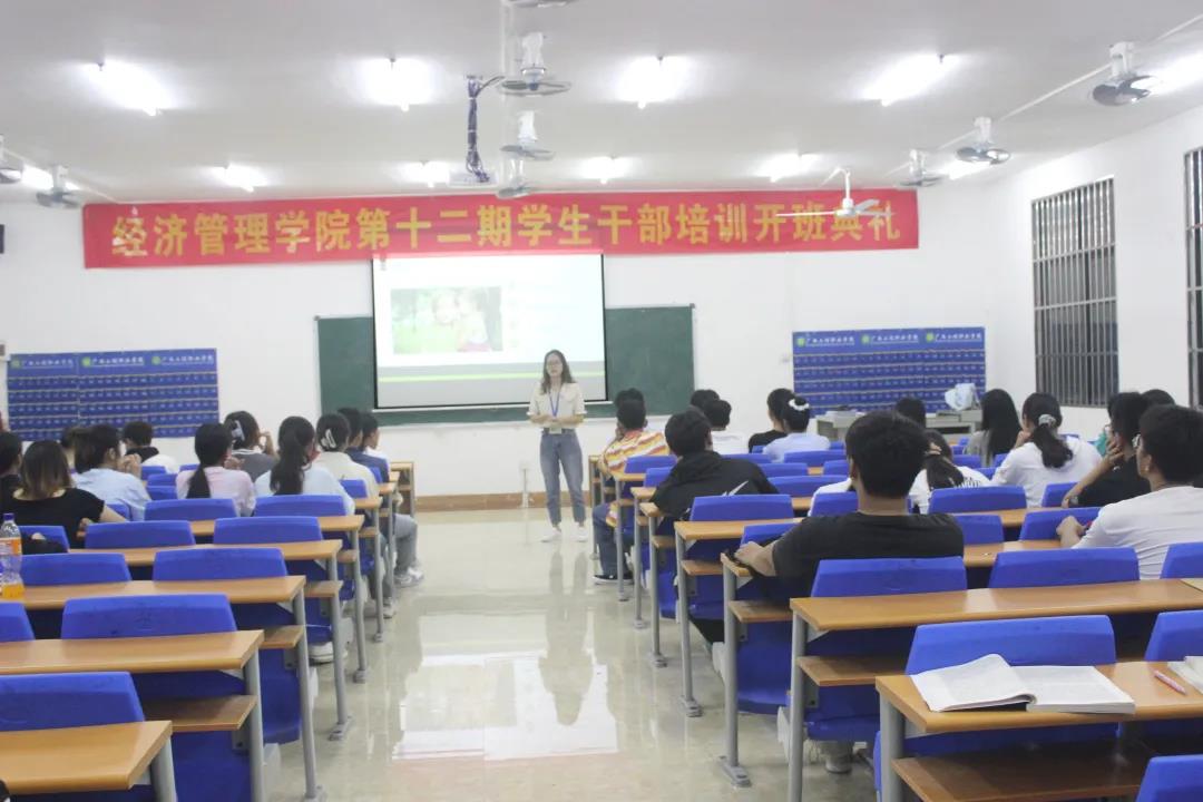 學校校長助理黃秋霞,經濟管理學院黨支部書記、副院長覃清香,經濟管理學院辦公室主任雷紅、分團委書記李東英及輔導員、專職老師代表出席開班儀式,經濟管理學院2021級全體學生干部參加培訓。