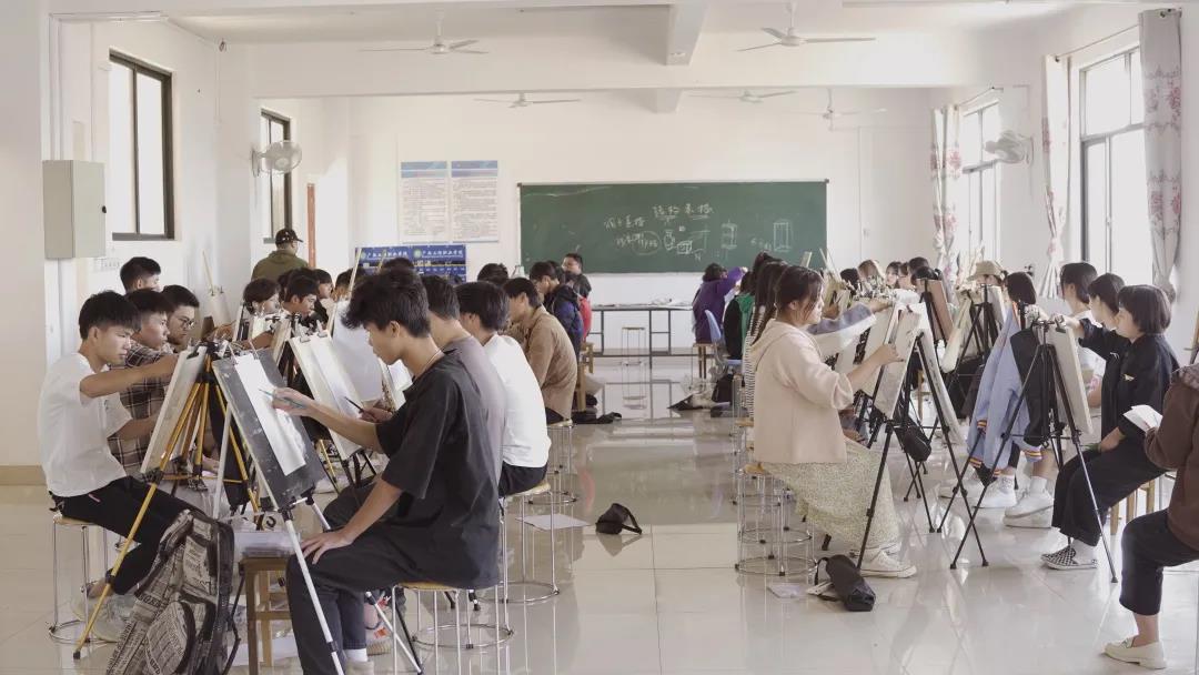 藝術(shù)設(shè)計(jì)學(xué)院的同學(xué)手持畫(huà)板