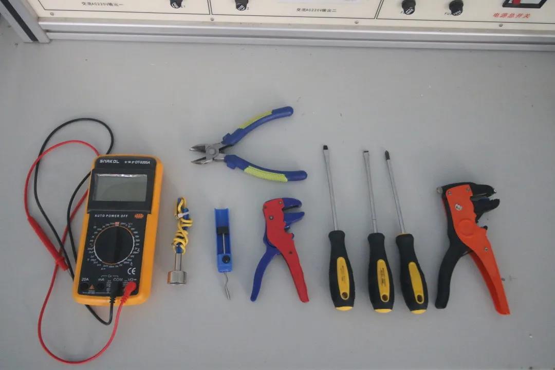 萬(wàn)用表、萬(wàn)用筆、螺絲刀、剝線鉗、尖嘴鉗、電工工具包、單芯鋁線、電工絕緣膠……