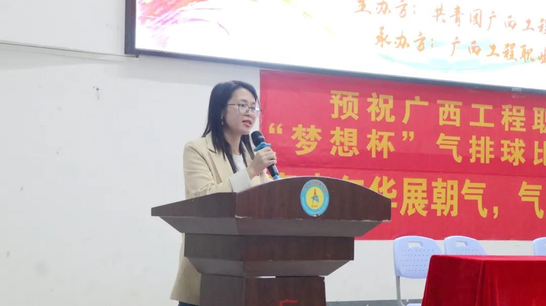 校團委黃詩晴老師向本屆"夢想杯"氣排球賽的順利舉辦表示熱烈的祝賀,希望參賽選手們秉著“健我強健體魄,養(yǎng)我浩然正氣”的精神,全力以赴投入比賽,努力拼搏,爭創(chuàng)佳績,賽出風格,賽出不凡,賽出友誼。黃老師最后希望同學們積極參加各項體育賽事,并預祝“夢想杯”氣排球賽圓滿成功!