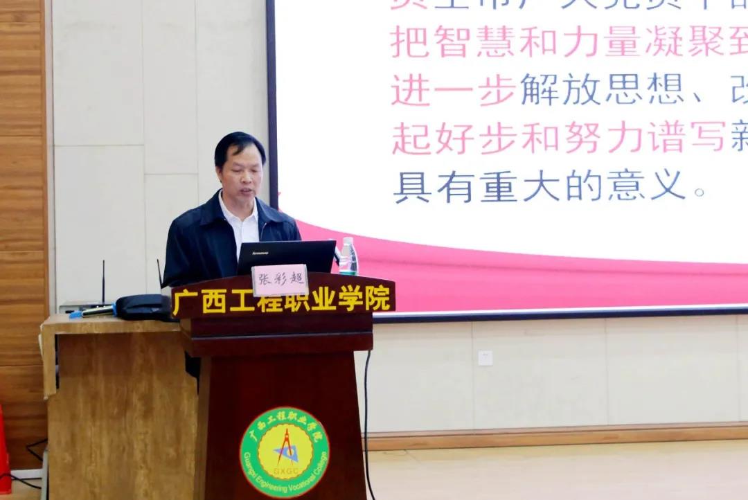 11月18日下午,在廣西工程職業(yè)學(xué)院圖文信息大樓一樓學(xué)術(shù)報告廳,平果市委黨校副教授、市委理論宣講團(tuán)講師張彩超為師生宣講學(xué)習(xí)貫徹中國共產(chǎn)黨百色市第五次代表大會精神。