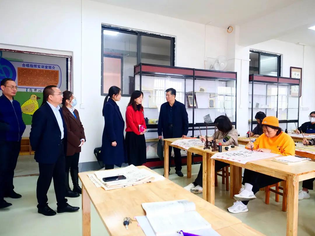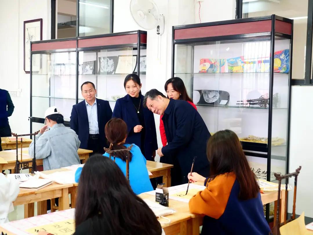 調(diào)研組現(xiàn)場(chǎng)觀摩書法課程教學(xué)并與學(xué)生親切交談,了解課堂教學(xué)情況
