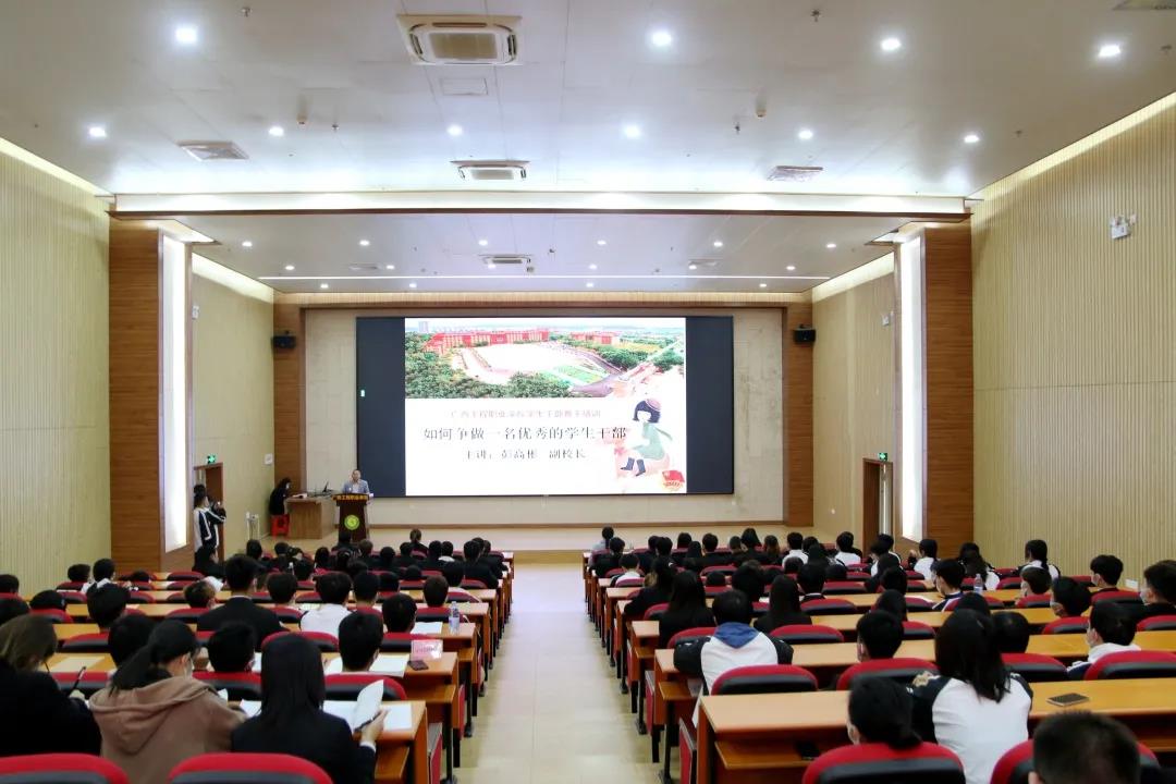 莫禮偉老師作題為《高校學(xué)生干部如何處理工作與專業(yè)學(xué)習(xí)的關(guān)系》的專題培訓(xùn),他要求學(xué)生干部要明確工作和學(xué)習(xí)的關(guān)系,正確認(rèn)識自己的職責(zé)使命,在做好本職工作的同時要兼顧學(xué)習(xí),做品學(xué)兼優(yōu)、工作能力強的優(yōu)秀學(xué)生干部。