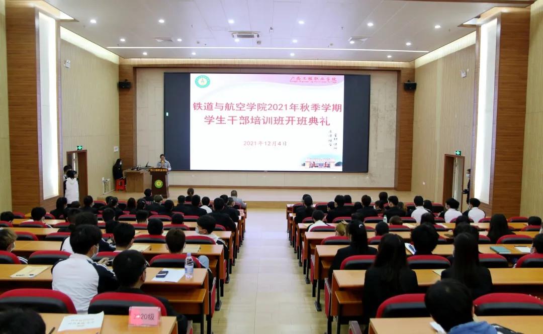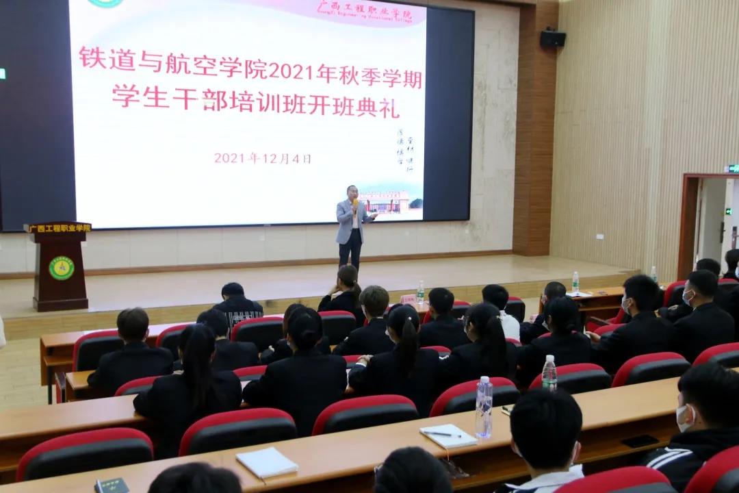 12月4日上午,學(xué)生干部培訓(xùn)班開班儀式在圖文信息大樓報告廳舉行。學(xué)校黨委委員、副校長彭高彬,鐵道與航空學(xué)院黨支部書記、副院長覃鳳姣,學(xué)生科長謝小玲出席開班儀式,全體2020級、2021級學(xué)生干部參加培訓(xùn)。儀式由覃鳳姣副院長主持。