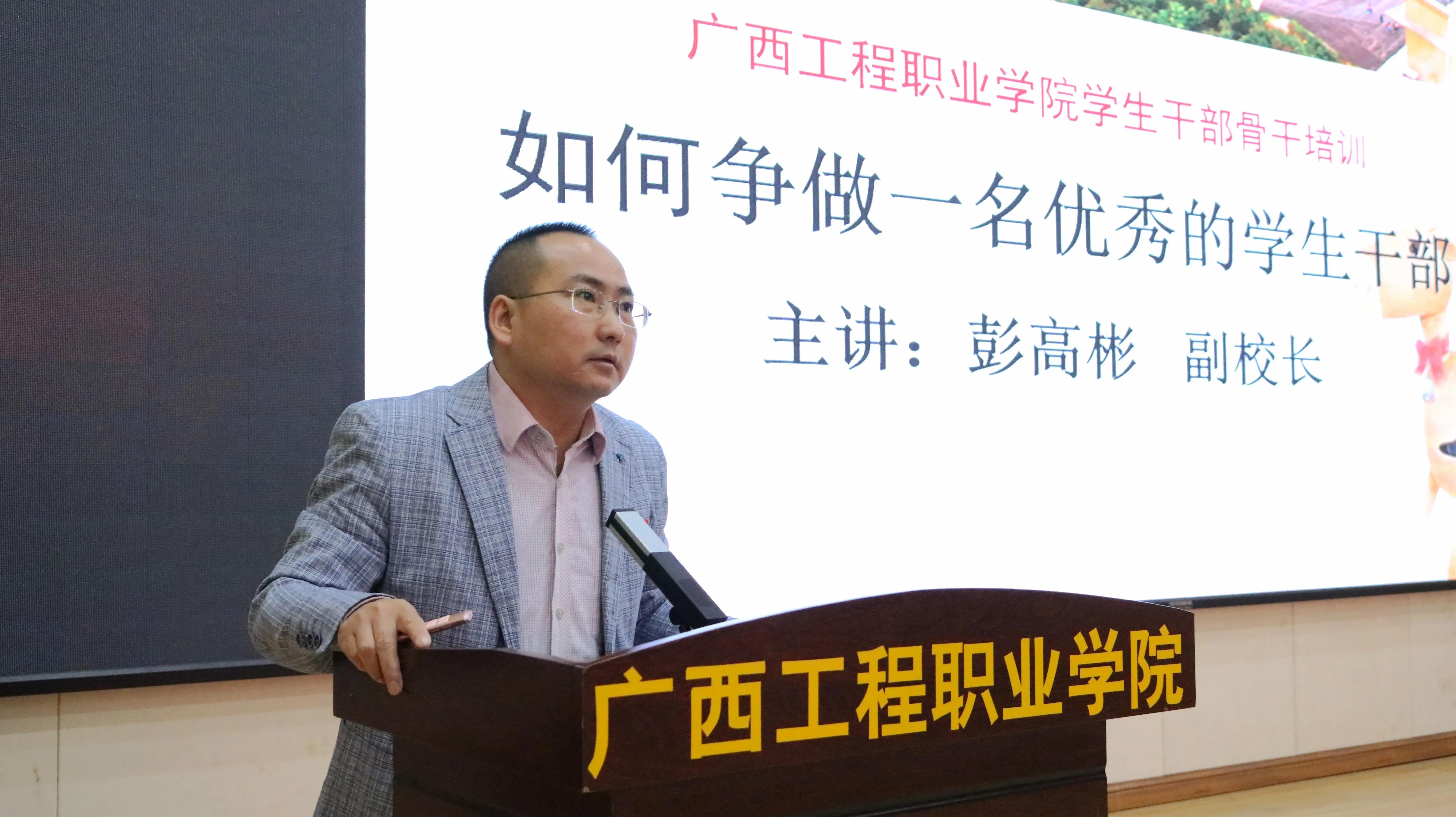 彭高彬副校長在開班第一講中作題為《如何做一名優(yōu)秀的學(xué)生干部》的專題培訓(xùn)。