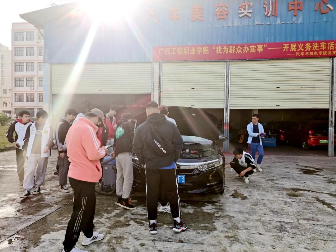 為進(jìn)一步弘揚(yáng)志愿服務(wù)精神,扎實(shí)推進(jìn)黨史學(xué)習(xí)教育“我為群眾辦實(shí)事”實(shí)踐活動(dòng),把學(xué)黨史與強(qiáng)化專業(yè)特色結(jié)合起來, 將黨史學(xué)習(xí)教育成果切實(shí)落實(shí)到實(shí)際工作中,為師生辦實(shí)事、解難題,營造文明和諧的校園。2021年12月2日,汽車與機(jī)電學(xué)院舉行“我為師生辦實(shí)事”義務(wù)洗車志愿服務(wù)活動(dòng),為學(xué)校師生免費(fèi)洗車。