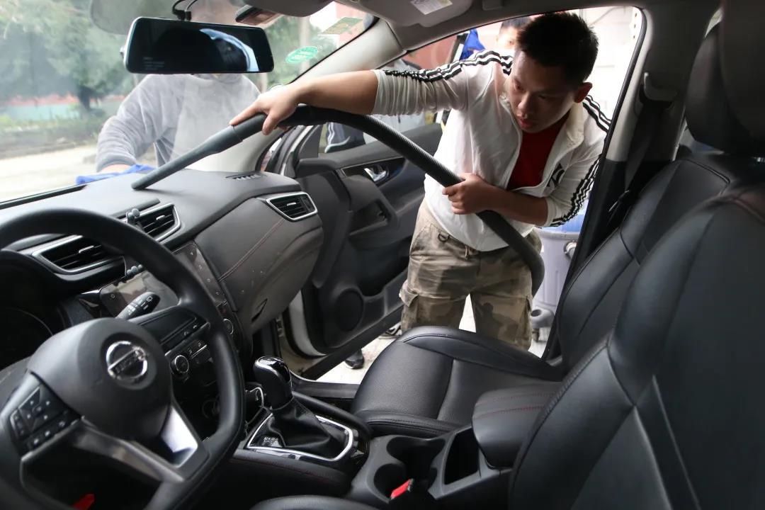 學(xué)生正在認(rèn)真幫助老師清理內(nèi)飾