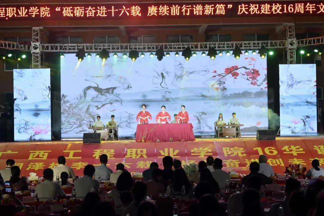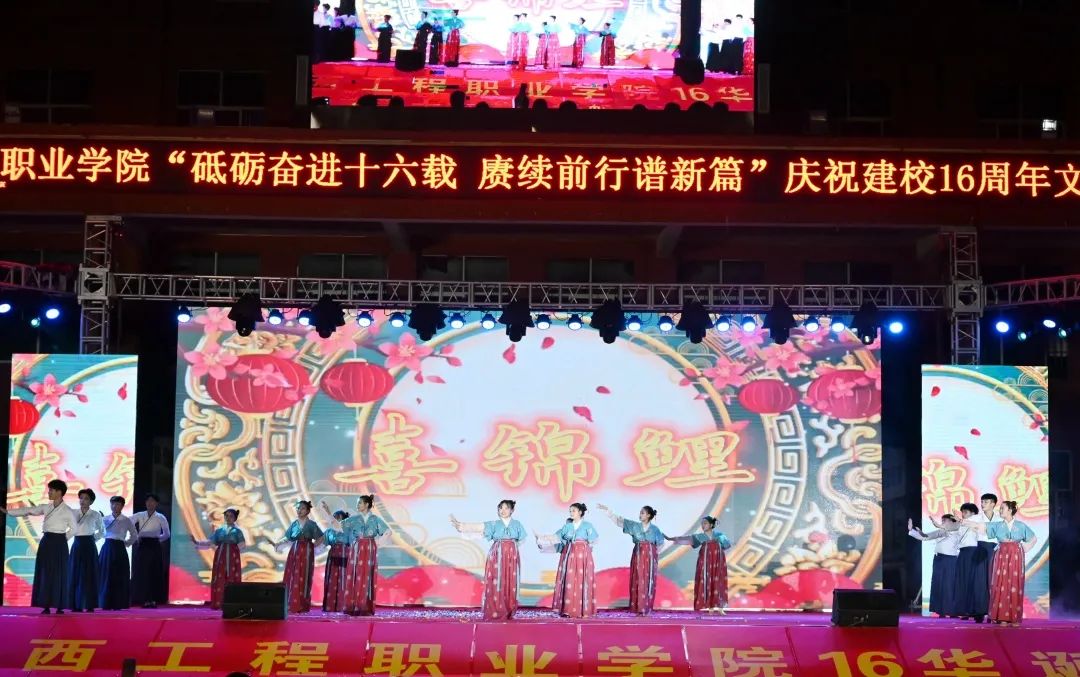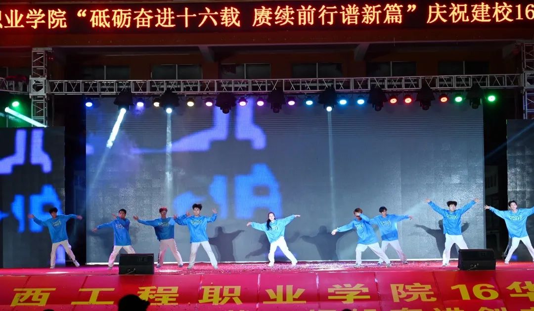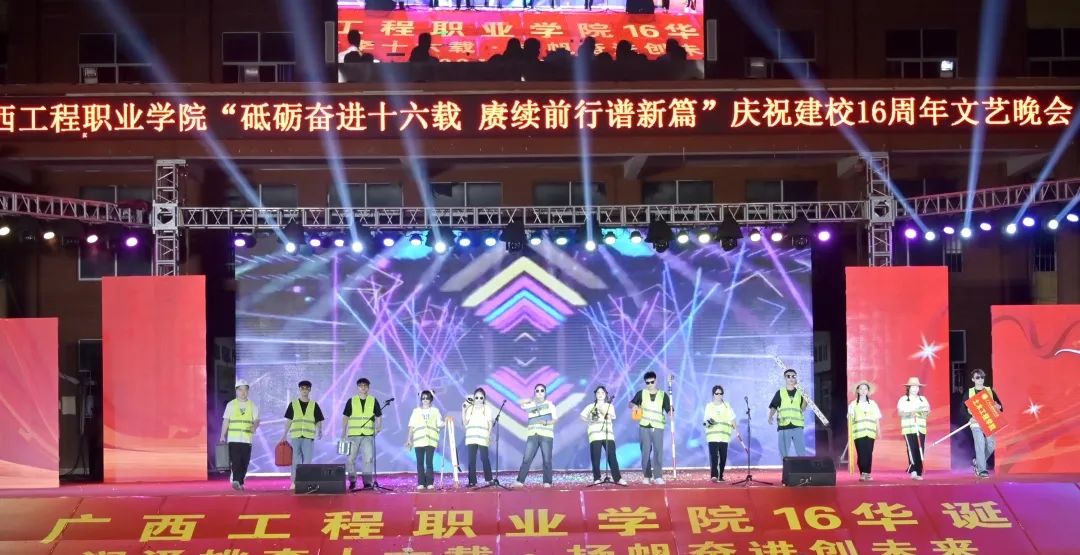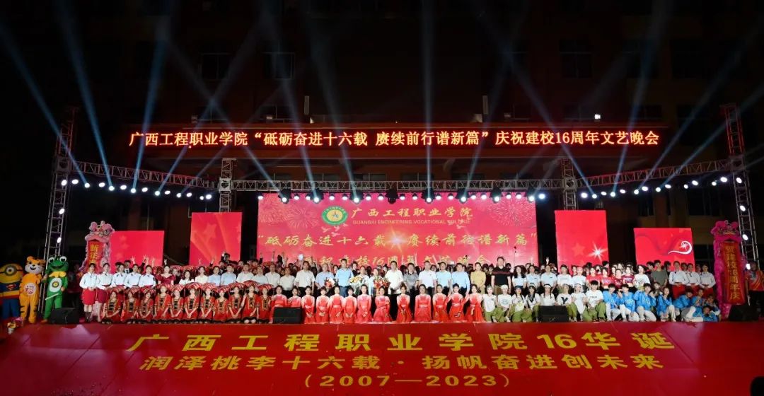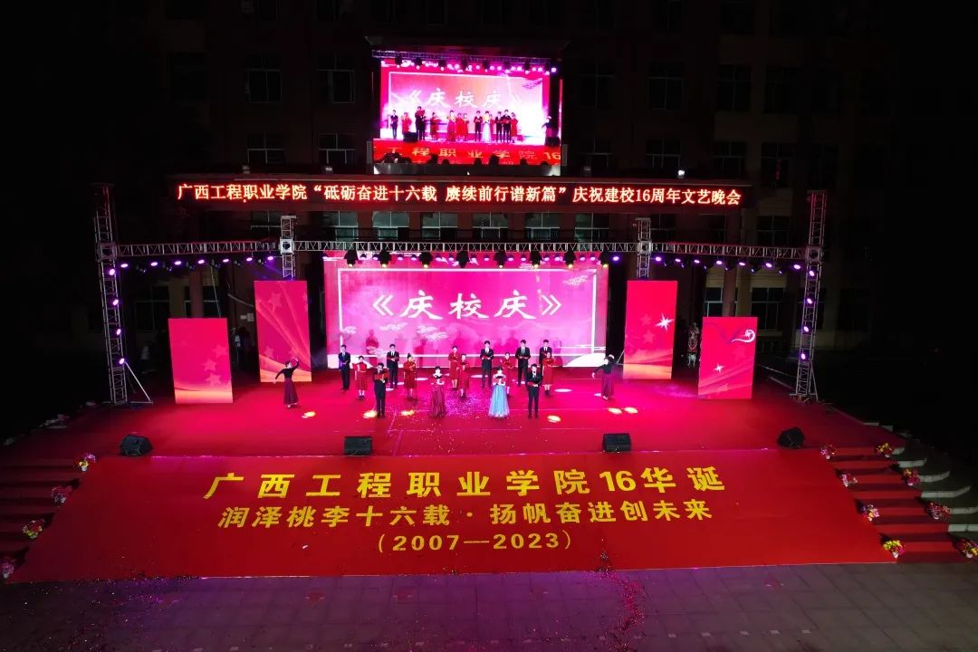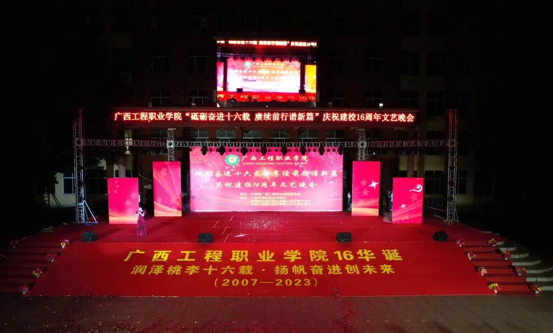 2023年4月20日晚,廣西工程職業(yè)學院"砥礪奮進十六載 賡續(xù)前行譜新篇"慶祝建校16周年文藝晚會在魯班廣場華麗上演。絢麗多彩的舞臺設計,耀眼璀璨的燈光,將晚會現(xiàn)場裝點得光彩奪目、激情四射。