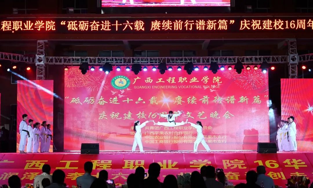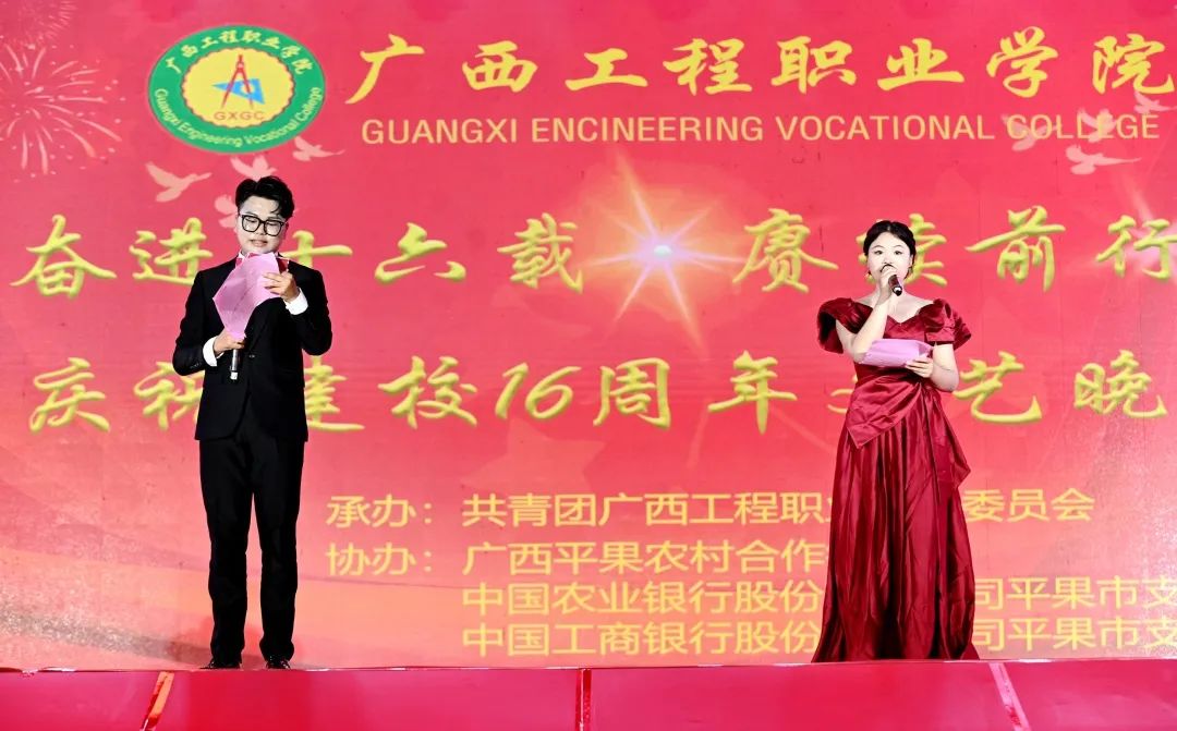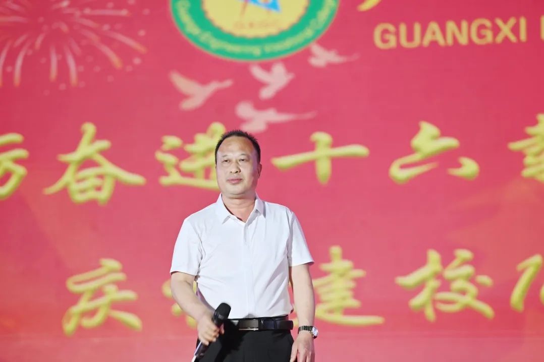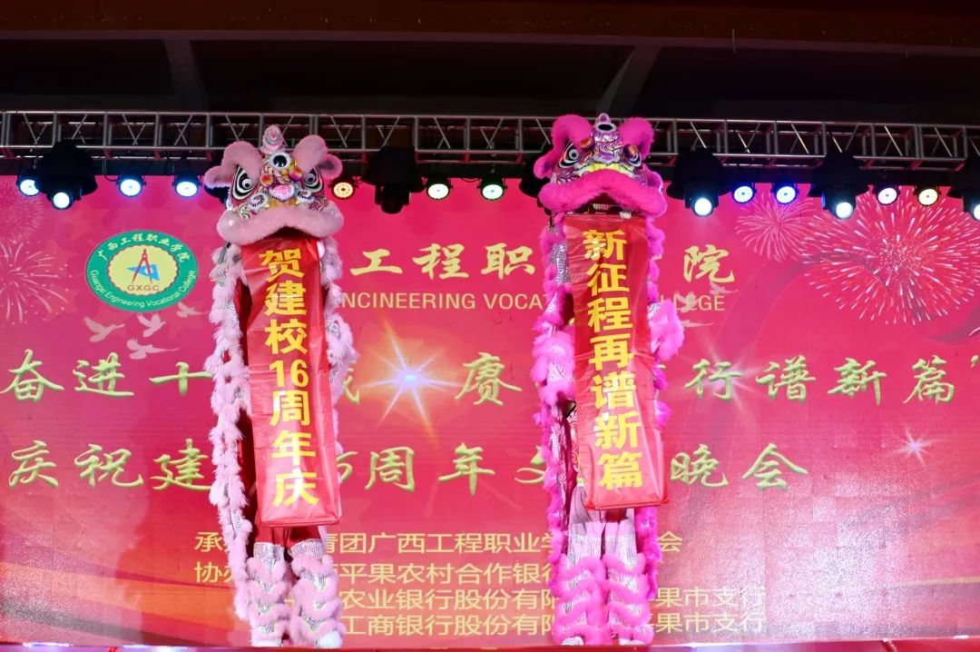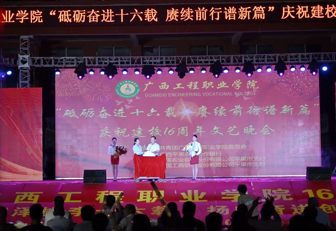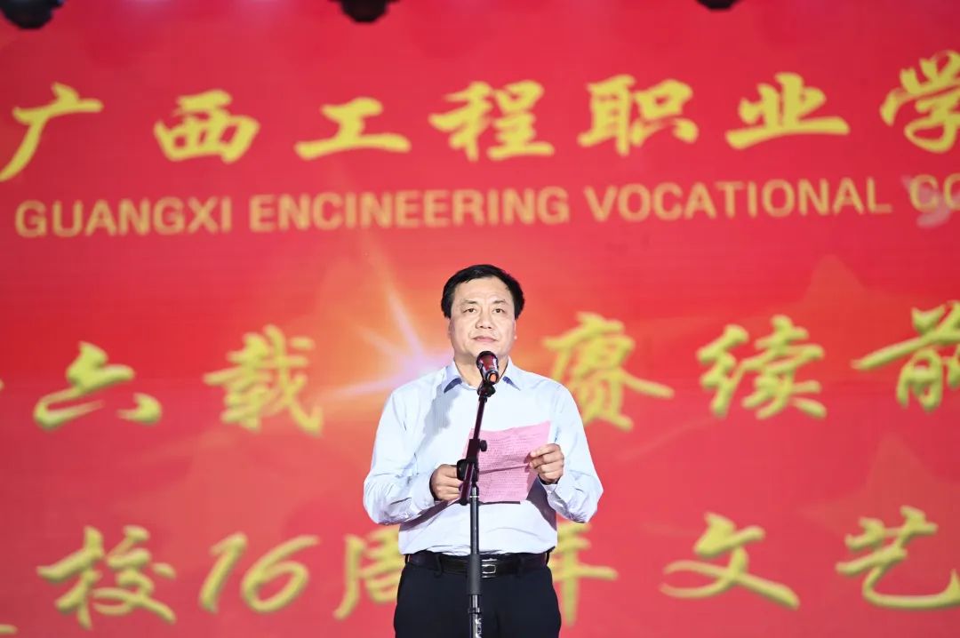 學校董事長李益宣布廣西工程職業(yè)學院慶祝建校16周年文藝晚會開始!禮炮響起,煙火綻放,校園的夜空璀璨,校園里其樂融融,共同慶祝學校16歲生日,祝愿廣西工程職業(yè)學院的未來更加輝煌!