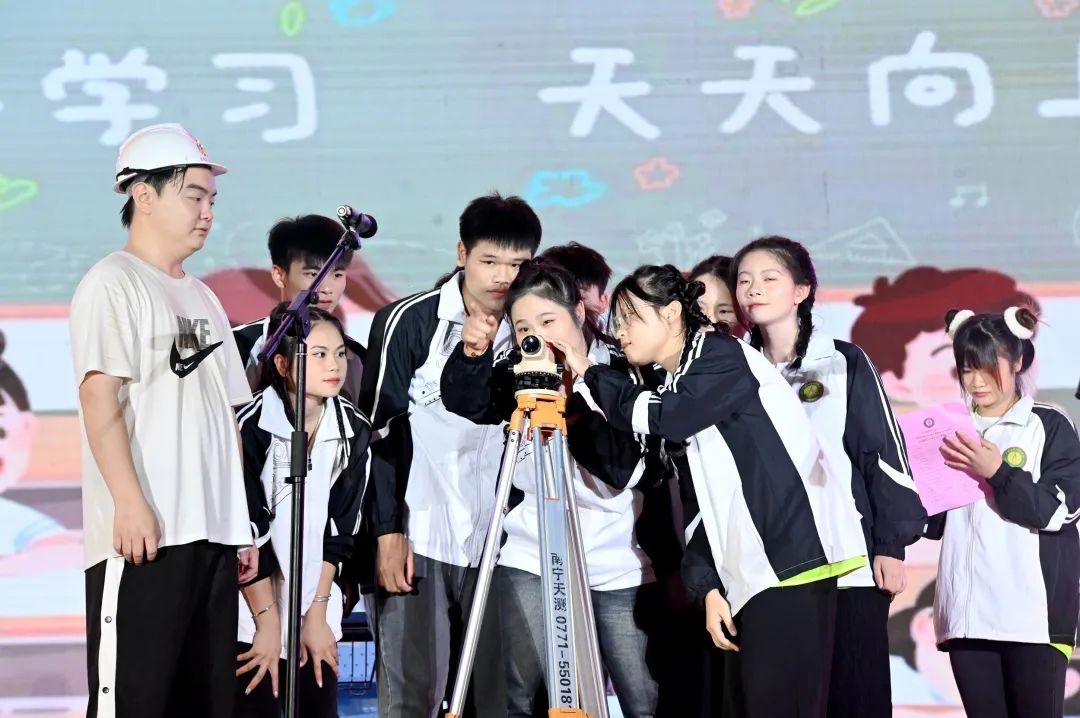校慶文藝晚會篇章內容除了展現(xiàn)學校辦學特色、豐富多彩的校園生活,還融入了壯族“三月三”民族傳統(tǒng)文化,展示學校濃厚的文化積淀。