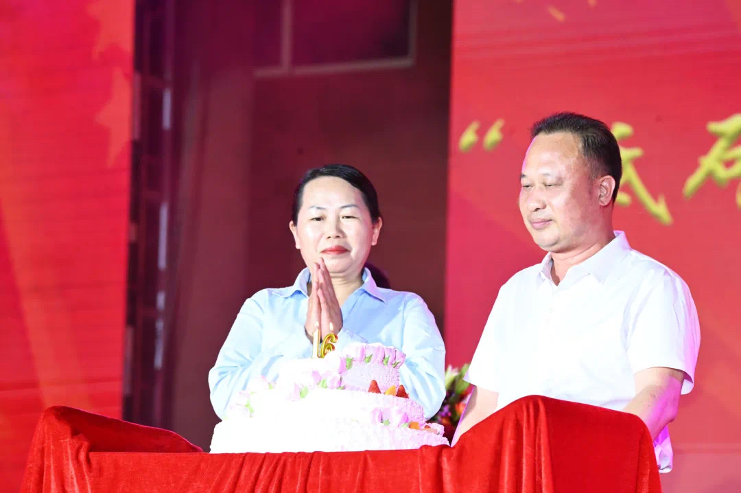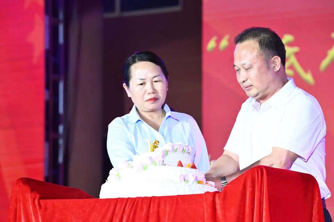 董事長李益、副董事長林艷 攜手一同切蛋糕,送上十六周年校慶祝福