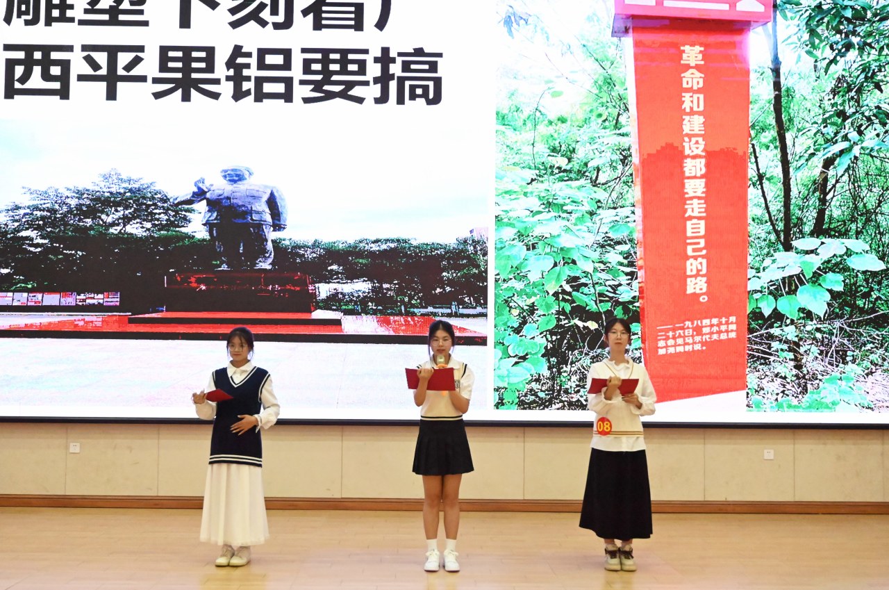 學(xué)校團(tuán)委副書記李麗清致辭,她指出,習(xí)近平總書記在黨的二十大報(bào)告中強(qiáng)調(diào),“用好紅色資源”。堅(jiān)持守正創(chuàng)新,才能更好實(shí)現(xiàn)“用好”目標(biāo)。創(chuàng)作優(yōu)秀文藝作品、講好紅色故事,堅(jiān)持在保護(hù)中創(chuàng)新、在創(chuàng)新中發(fā)展,讓紅色資源“活”起來、 “火”起來,我們定能更好地從革命歷史中汲取智慧和力量,增強(qiáng)砥礪奮進(jìn)的信心和勇氣。