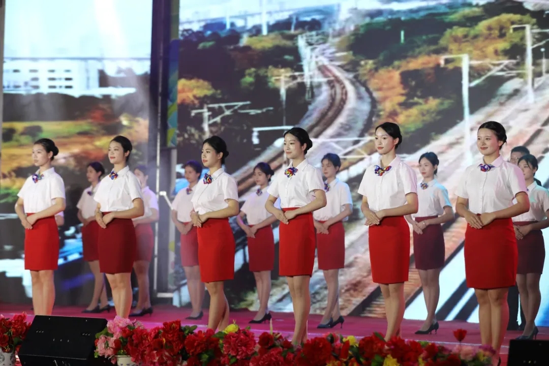 鐵道與航空學(xué)院的同學(xué)們身著專業(yè)制服,在舞臺上展示出優(yōu)雅和自信。