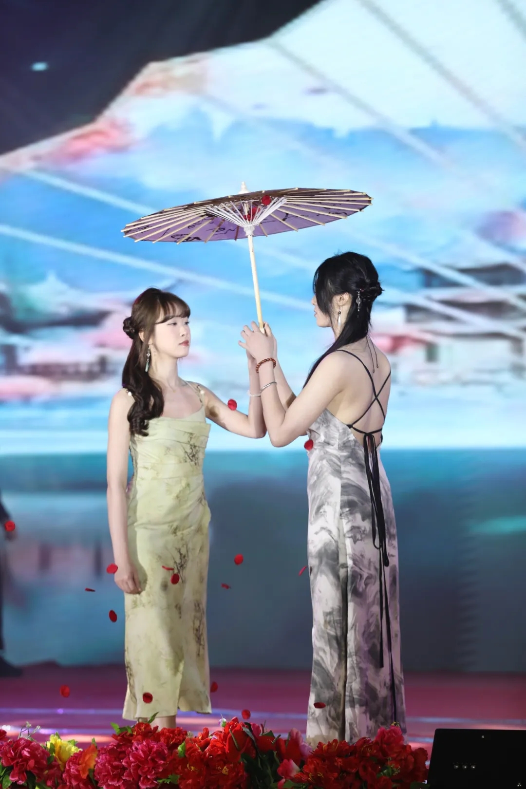 好驚艷!同學(xué)們帶來的新中式走秀,搖曳生姿,氣場全開,呈現(xiàn)了一場美輪美奐的視覺盛宴,現(xiàn)場歡呼聲不斷。