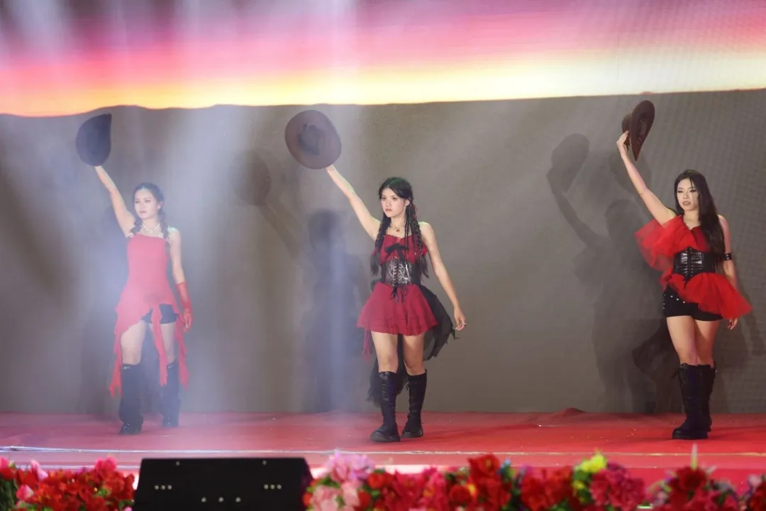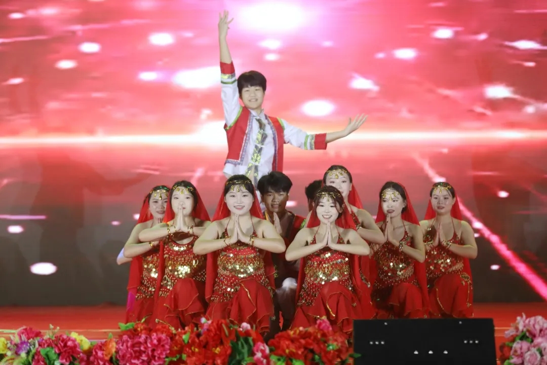 同學(xué)們用獨(dú)特的樂器與舞蹈雙結(jié)合,創(chuàng)新性表演了《最炫民族風(fēng)》,點(diǎn)燃晚會(huì)現(xiàn)場歡樂而充滿活力的氣氛!