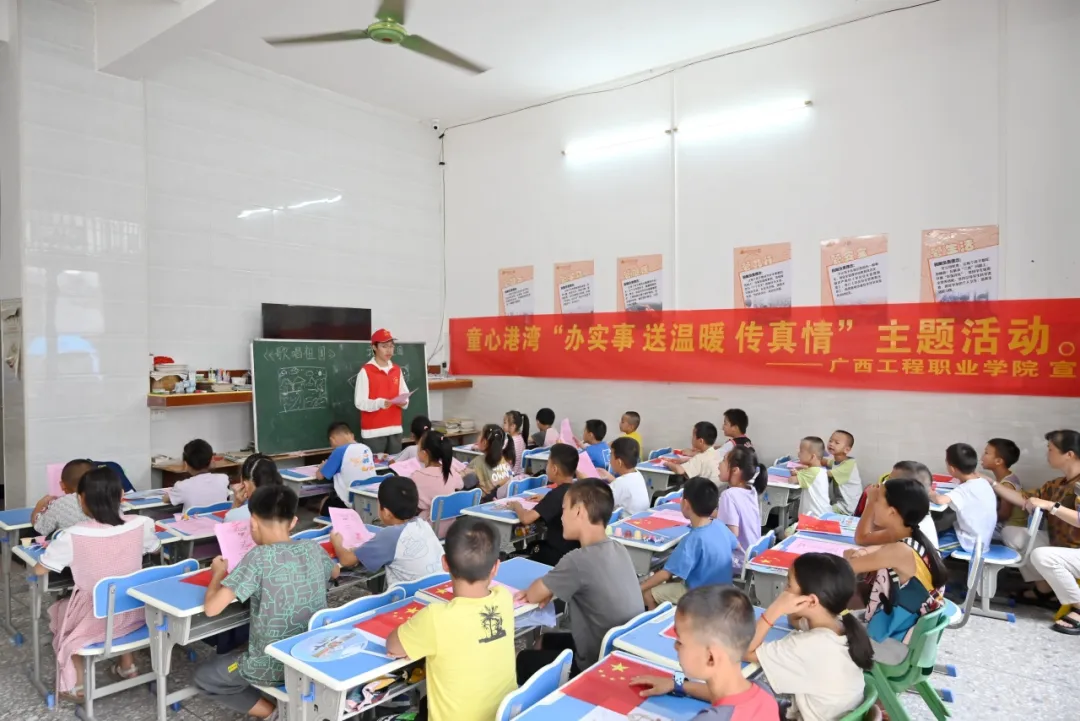 2024年7月16日,廣西工程職業(yè)學(xué)院“傳承紅色基因,勇?lián)鷷r(shí)代使命”實(shí)踐團(tuán)、“青年先鋒隊(duì),基層實(shí)踐行”服務(wù)團(tuán)走進(jìn)河池市東蘭縣武篆鎮(zhèn),開展“追尋紅色足跡 汲取奮進(jìn)力量”等愛國(guó)主義教育活動(dòng)和“童心港灣‘辦實(shí)事 送溫暖 傳真情’”等特色實(shí)踐服務(wù)活動(dòng)。